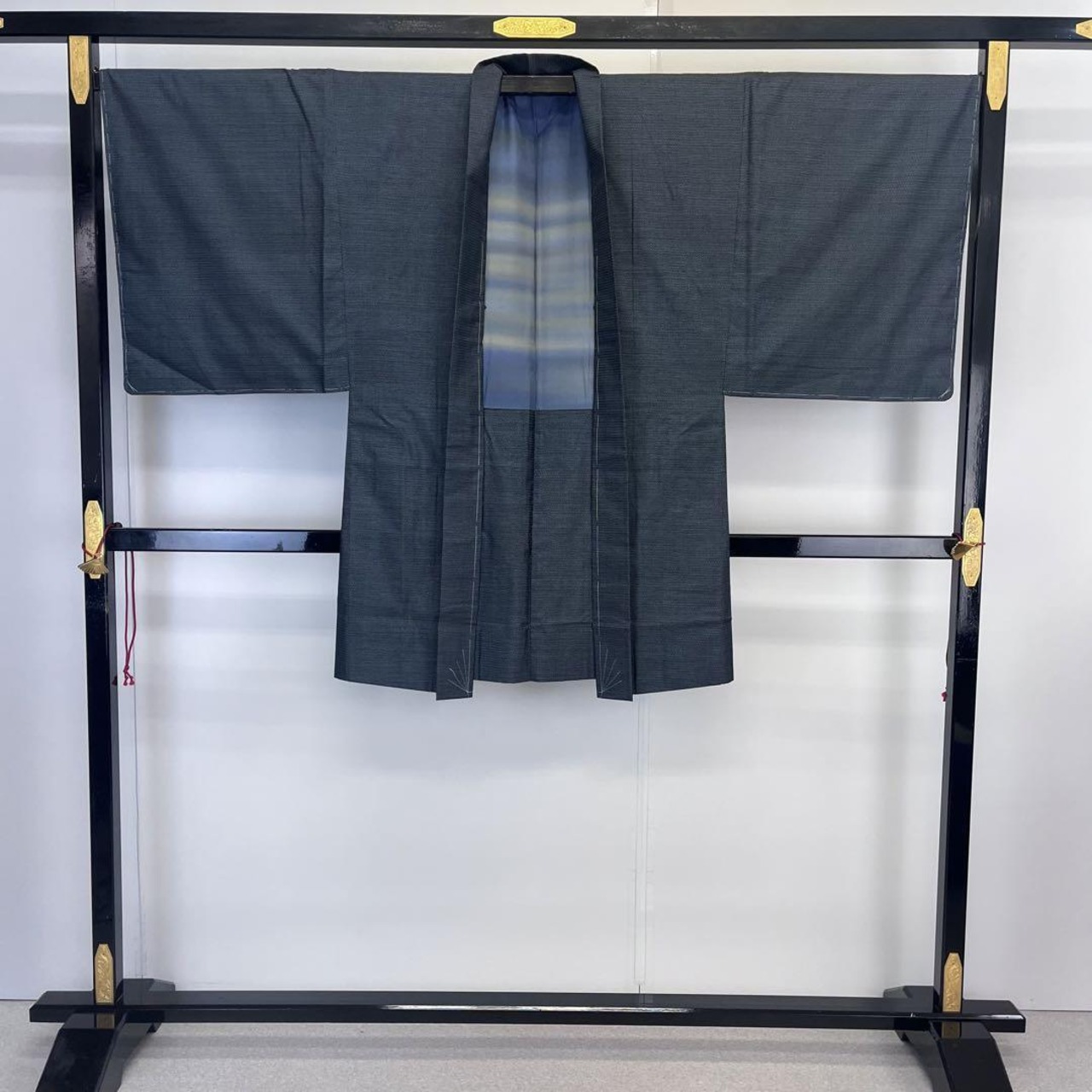 深藍色の草木染のお色味、100亀甲柄がデザインされた素敵なお品でございます。