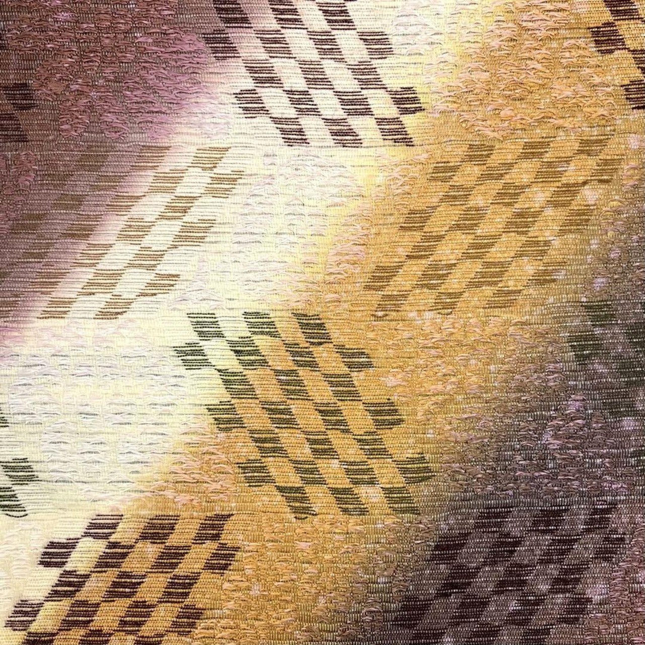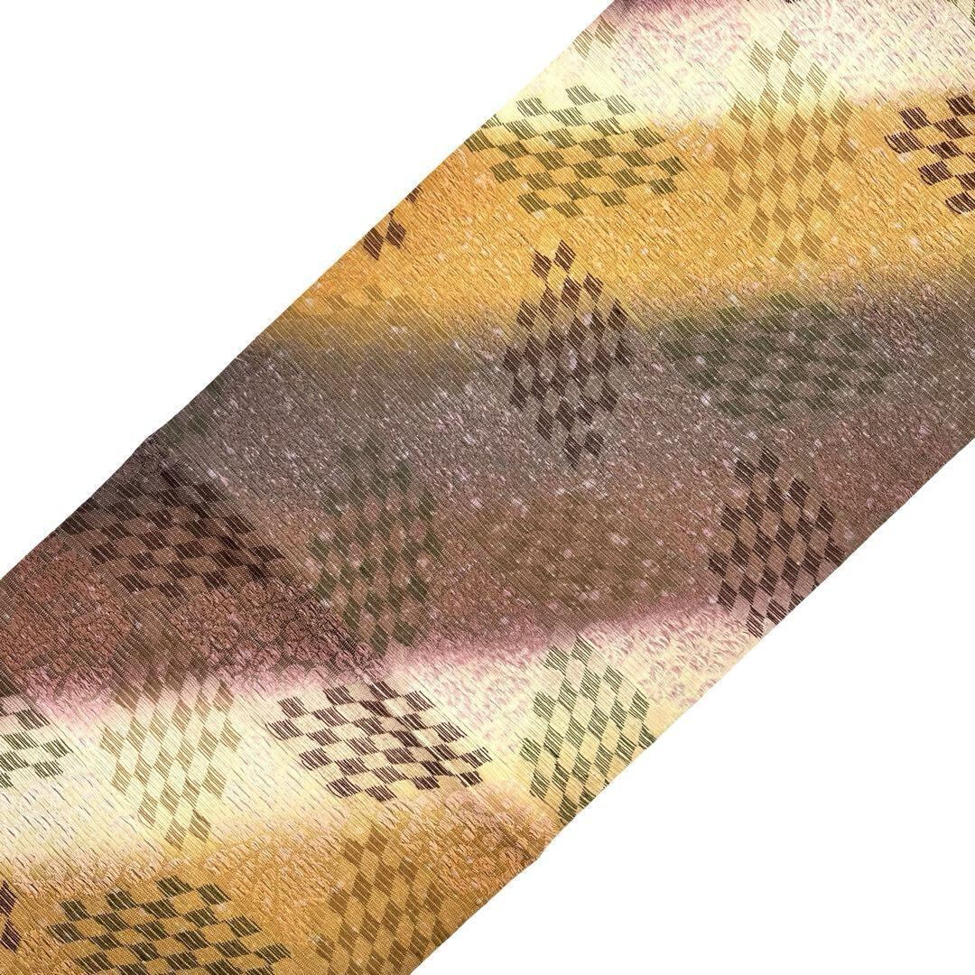 美しい斜め柄の染分けの色彩、花模様、斜め市松模様の柄裄がデザインされた素敵なお品でございます。