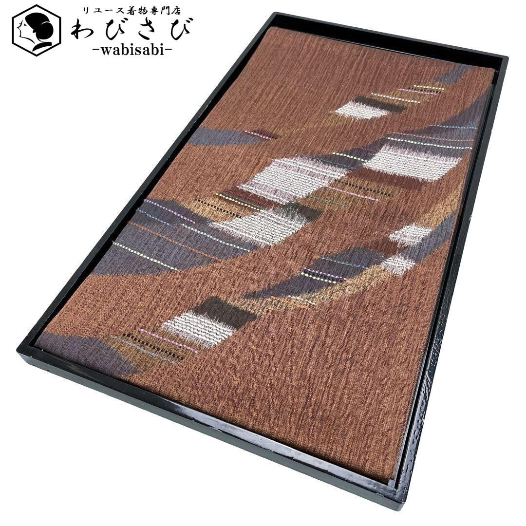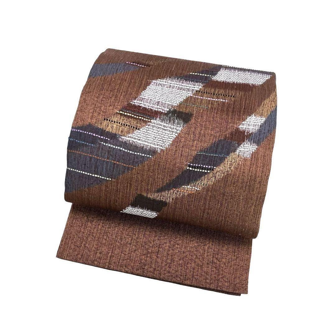 袋帯 紬 抽象織模様 金銀糸 褐色色 カジュアル O-4489 着物 きもの kimono 和服 和装 中古 リサイクル着物 【送料無料】