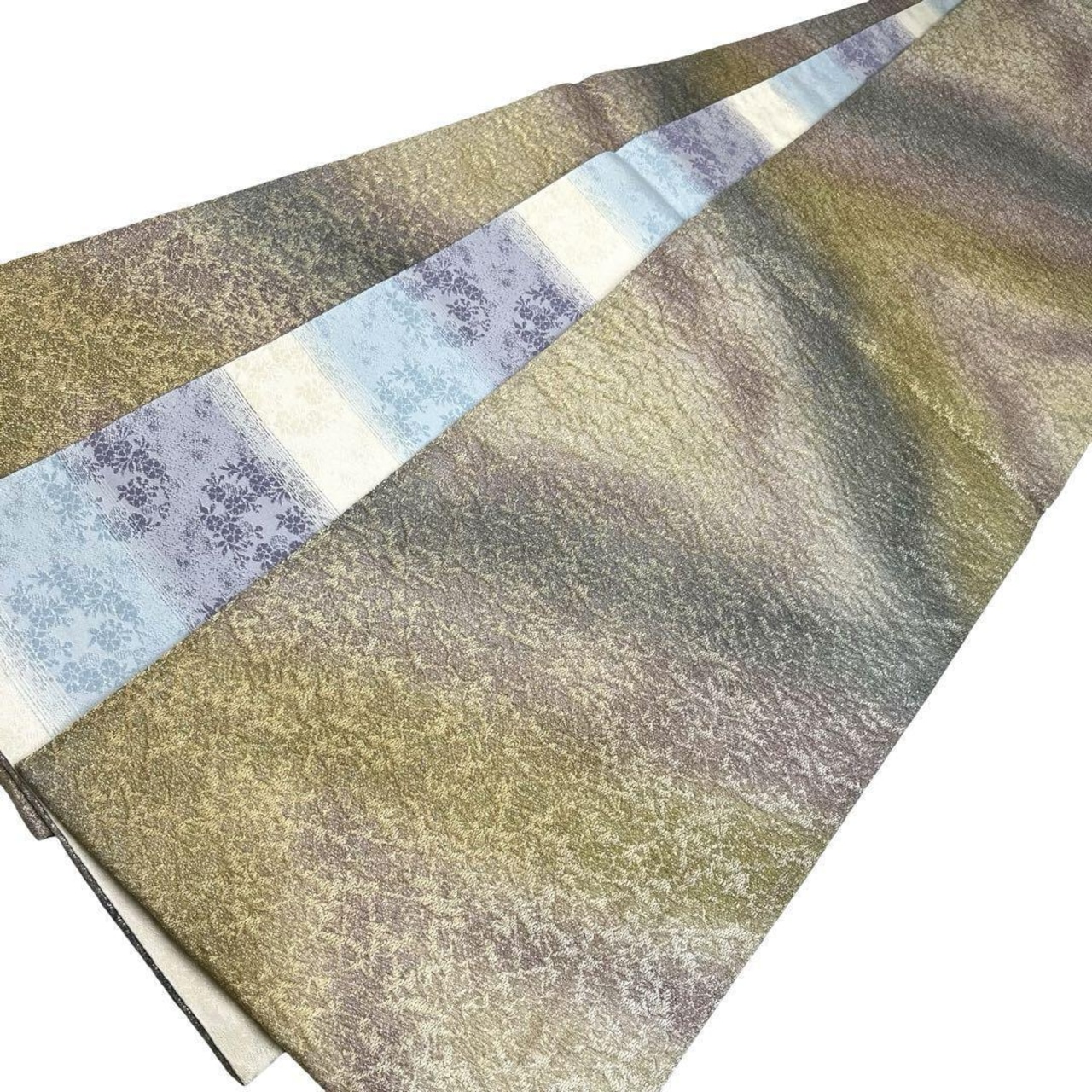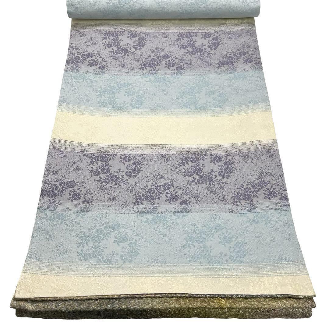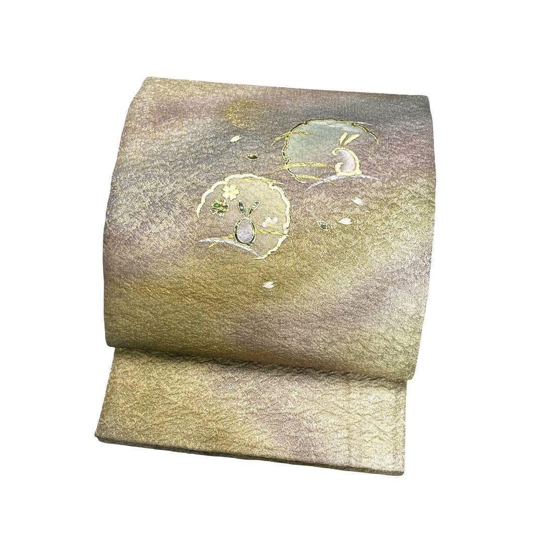淡い暈しの色彩、雪輪に螺鈿が使われた兎、花模様、月の柄裄がデザインされた品のある素敵な柄裄のお品でございます。