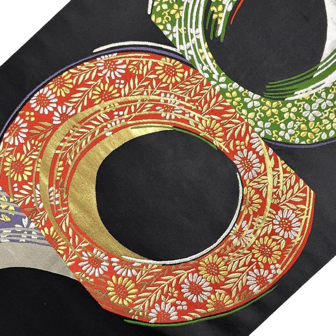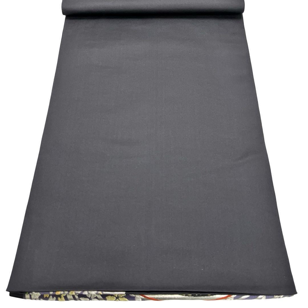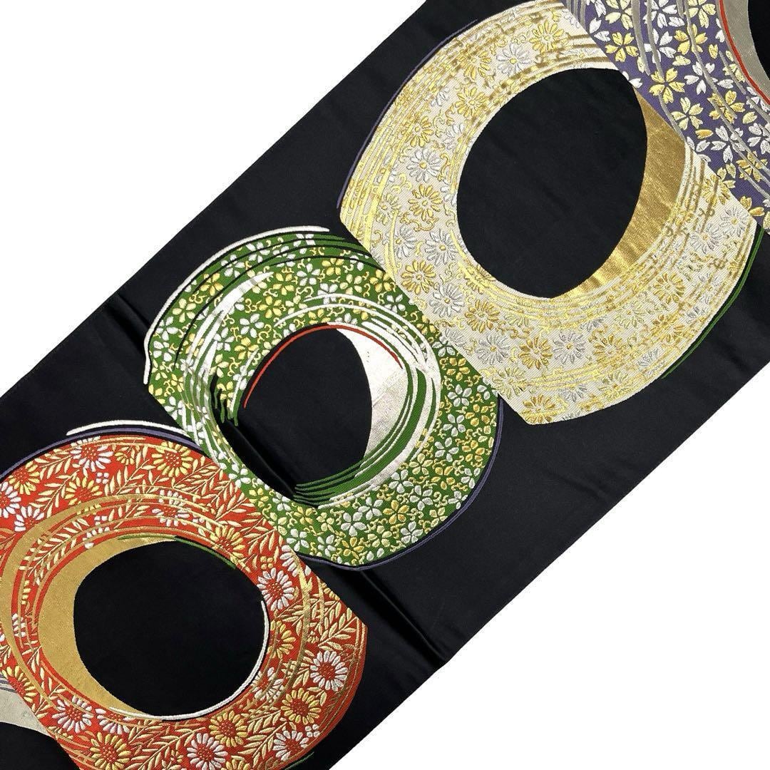黒地に金銀糸が使われた丸に花模様がデザインされた雰囲気の良い色鮮やかな素敵な柄裄のお品でございます。