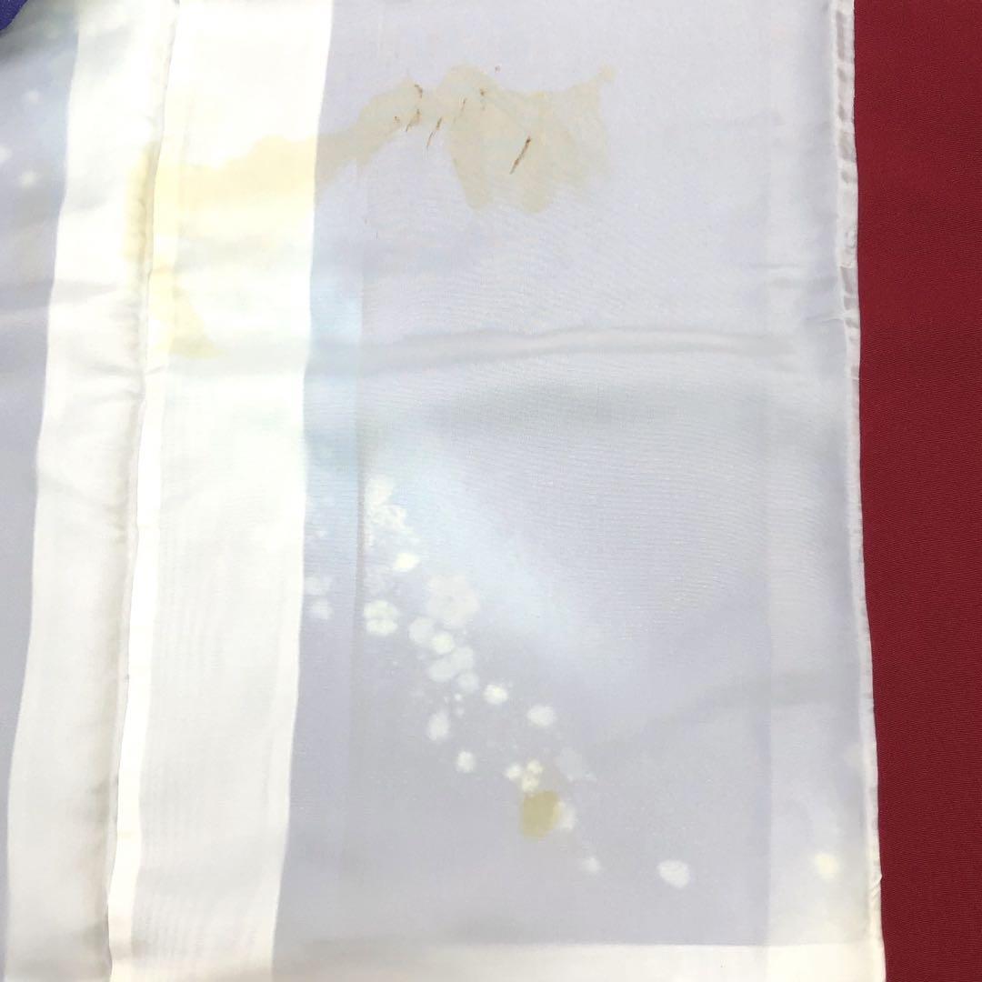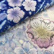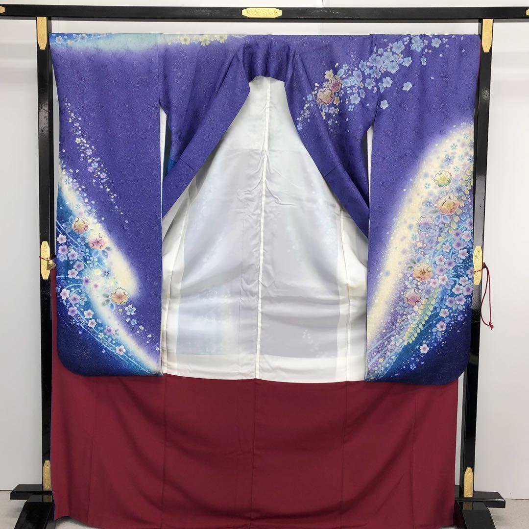 青紫色ベースのグラデーションのお色味に辻が花がデザインされた華やかで美しい素敵な柄裄のお品でございます。