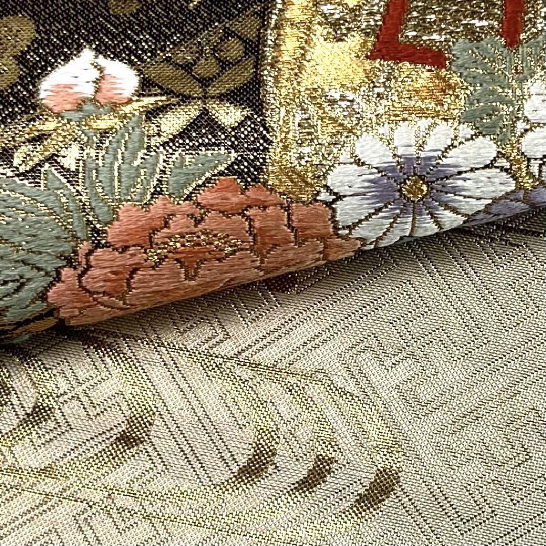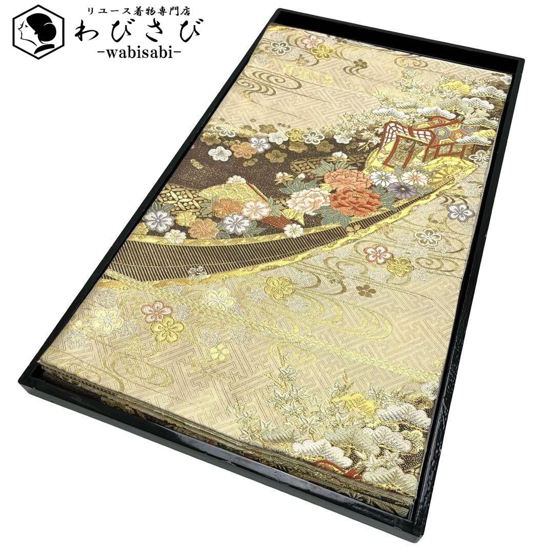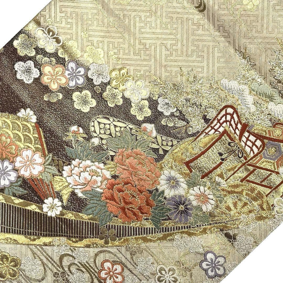 袋帯 御所車に美しい花模様 紗綾形 金銀糸 信楽茶色 フォーマル O-4486 着物 きもの kimono 和服 和装 中古 リサイクル着物 【送料無料】