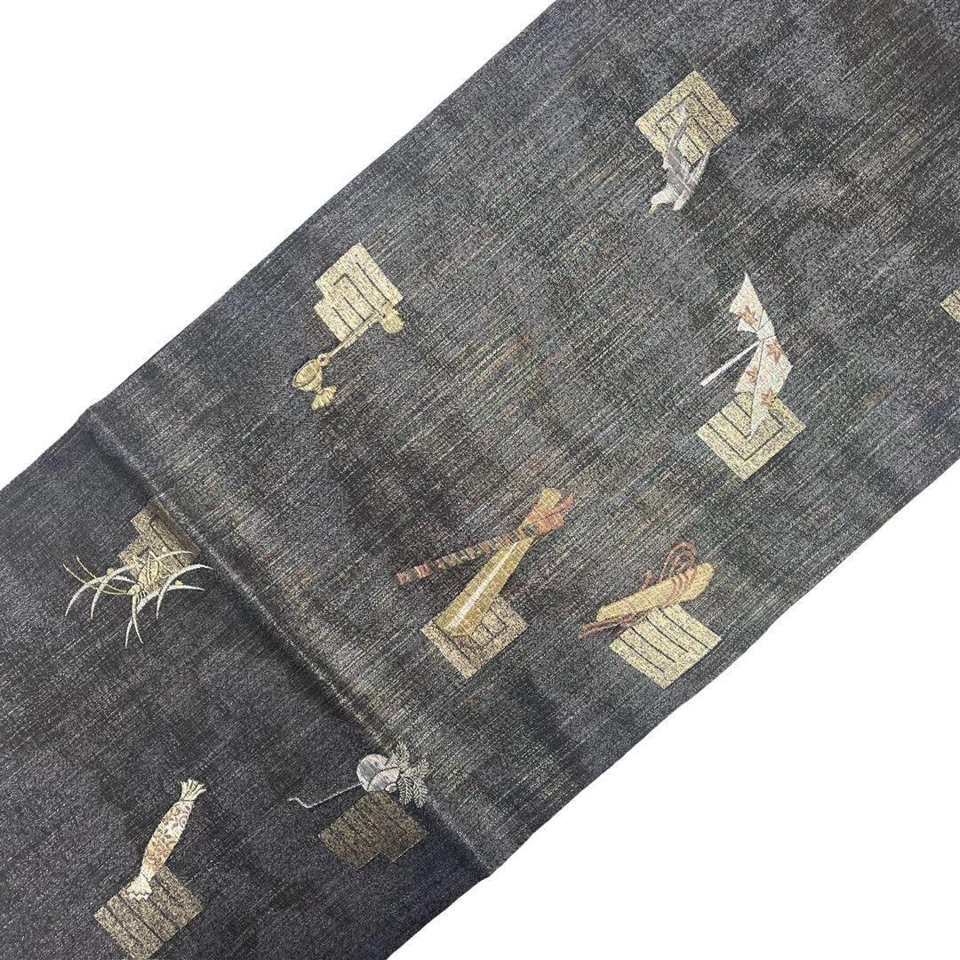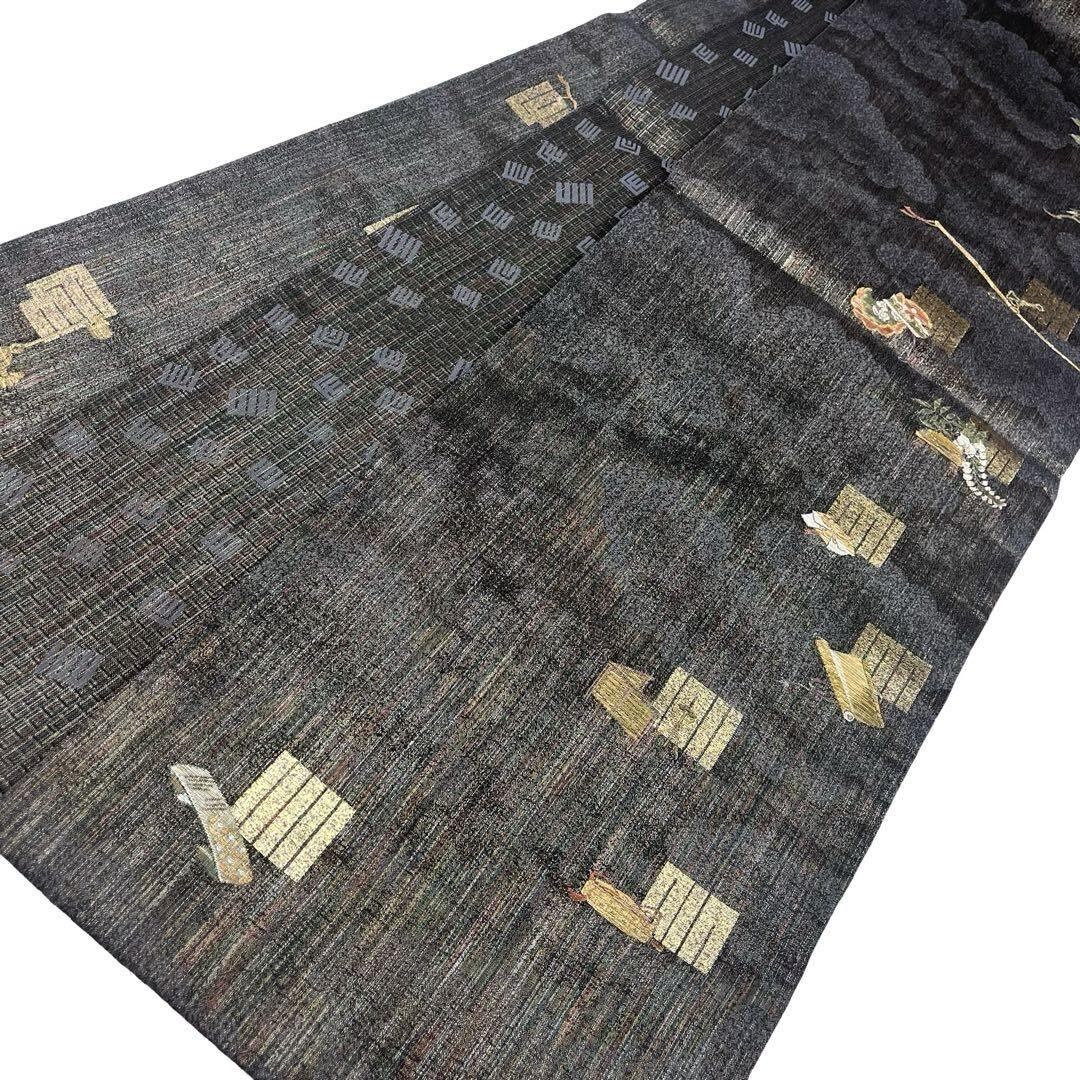 袋帯 リバーシブル 源氏物語の香り 金糸 黒色 O-4521 着物 きもの kimono 和服 和装 中古 リサイクル着物 【送料無料】
