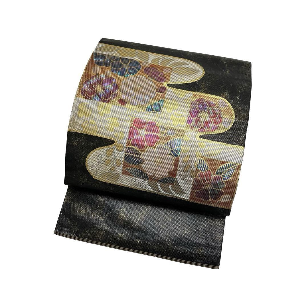 袋帯 西陣 川島織物 螺鈿 引箔 霞模様に花柄 金糸 黒色 O-4452 着物 きもの kimono 和服 和装 中古 リサイクル着物 【送料無料】