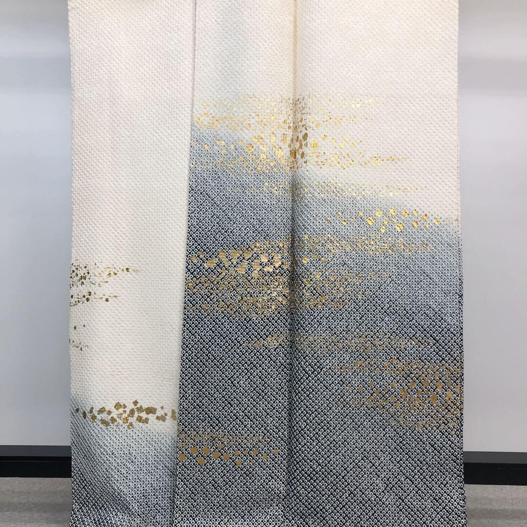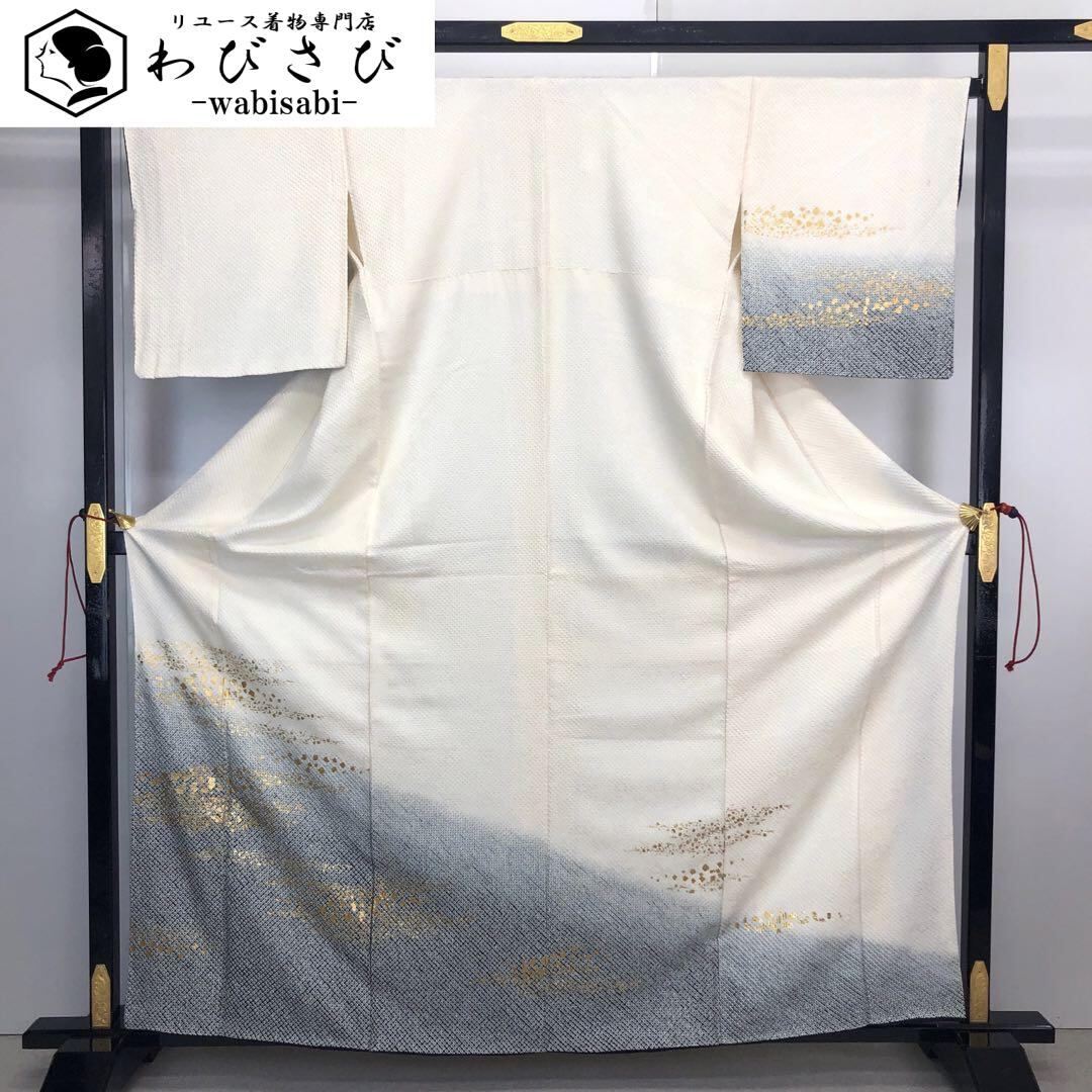 付下げ 絞り柄 金彩霞模様 グラデーション 乳白色 K-4258 着物 きもの kimono 和服 和装 中古 リサイクル着物 【送料無料】