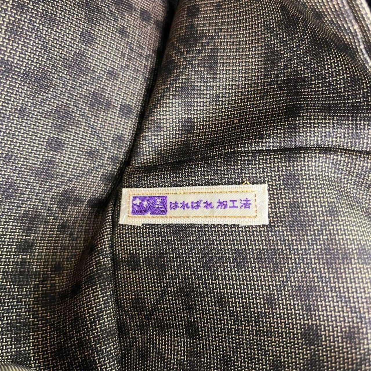 焦茶色ベースのお色味の染大島、鳥獣戯画の雰囲気の良い染め柄がデザインされた素敵な柄裄のお品でございます。