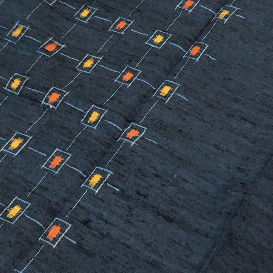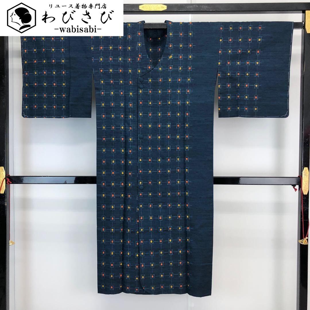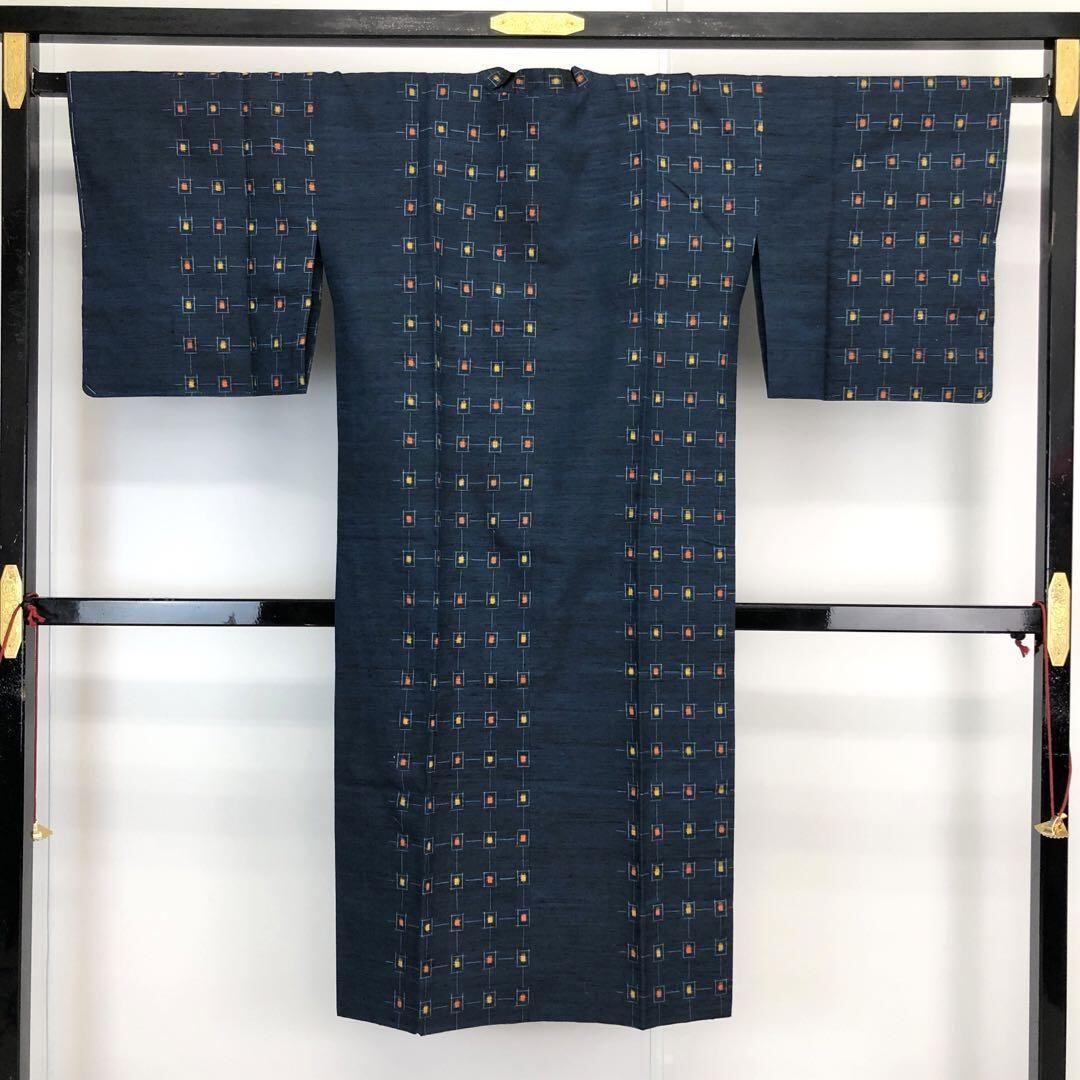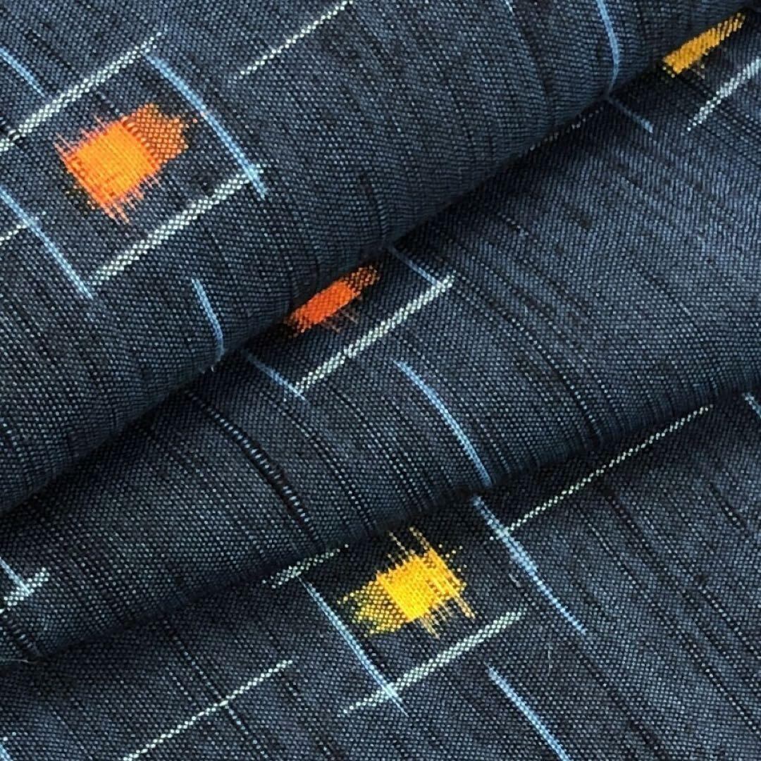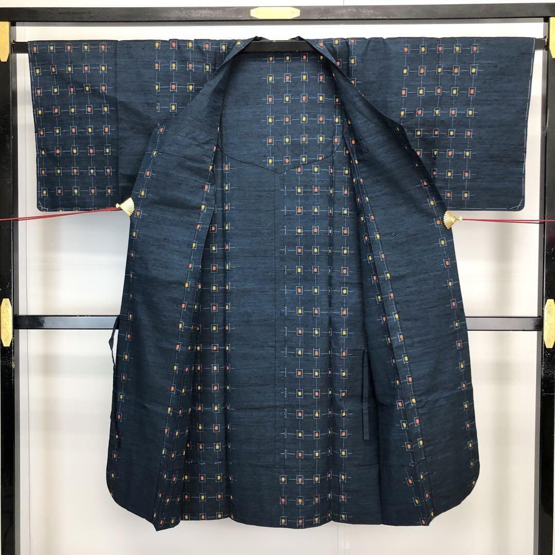 紺青色のお色味の紬に雰囲気の良い絣模様の柄行がデザインされた素敵なお品でございます。