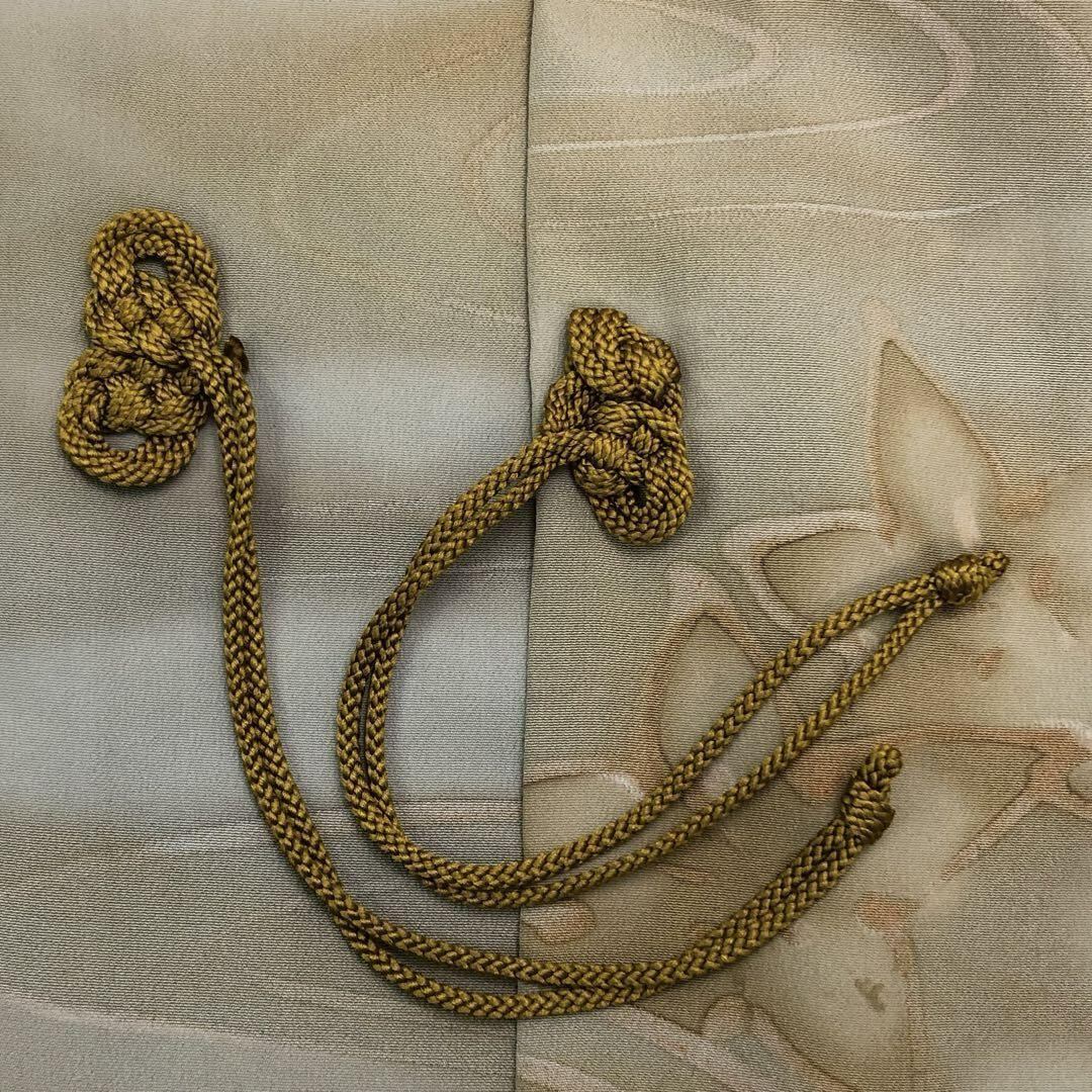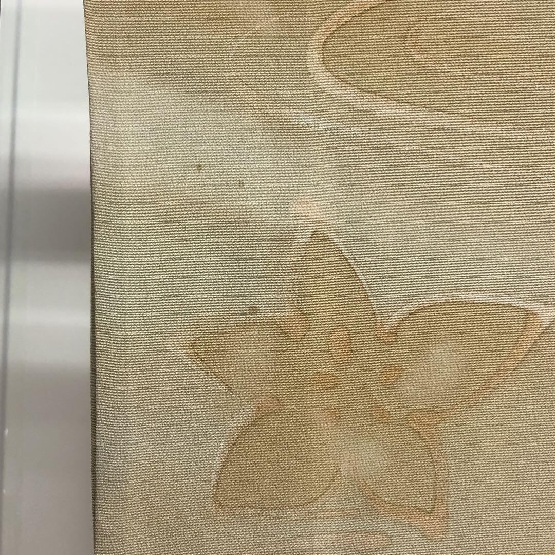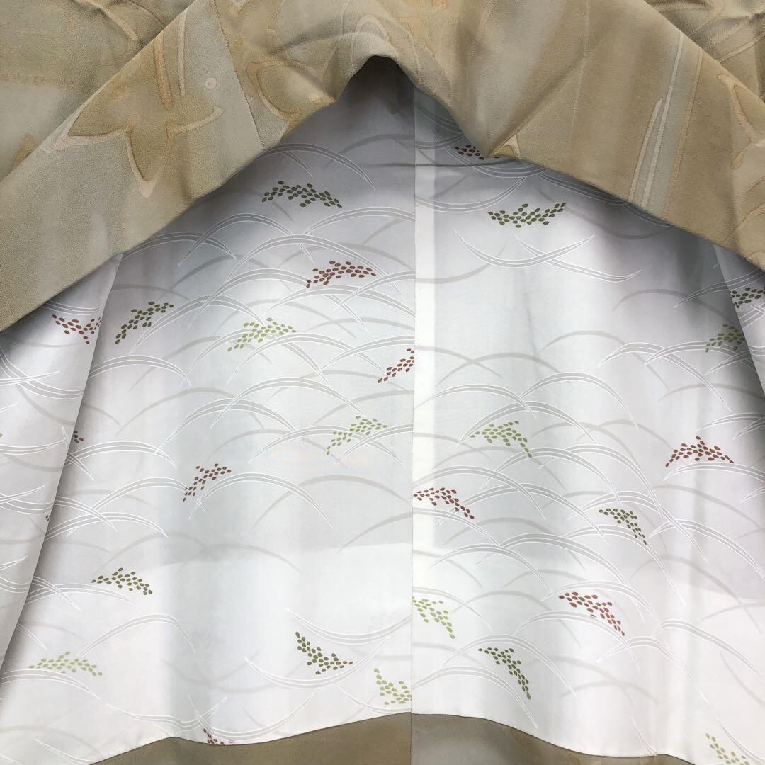 古晒色の落ち着きのあるお色味に流水に花模様の染柄がデザインされた素敵なお品でございます。