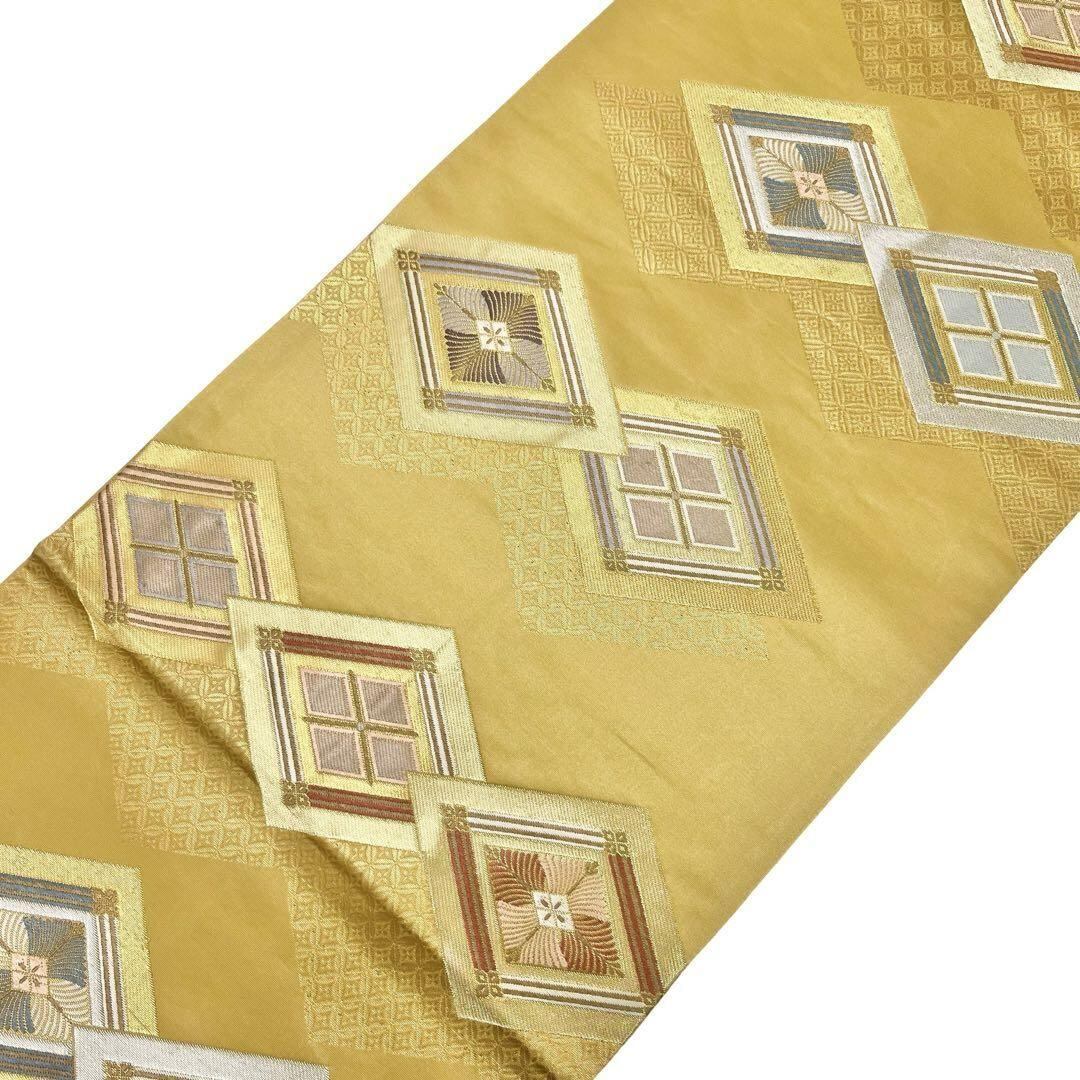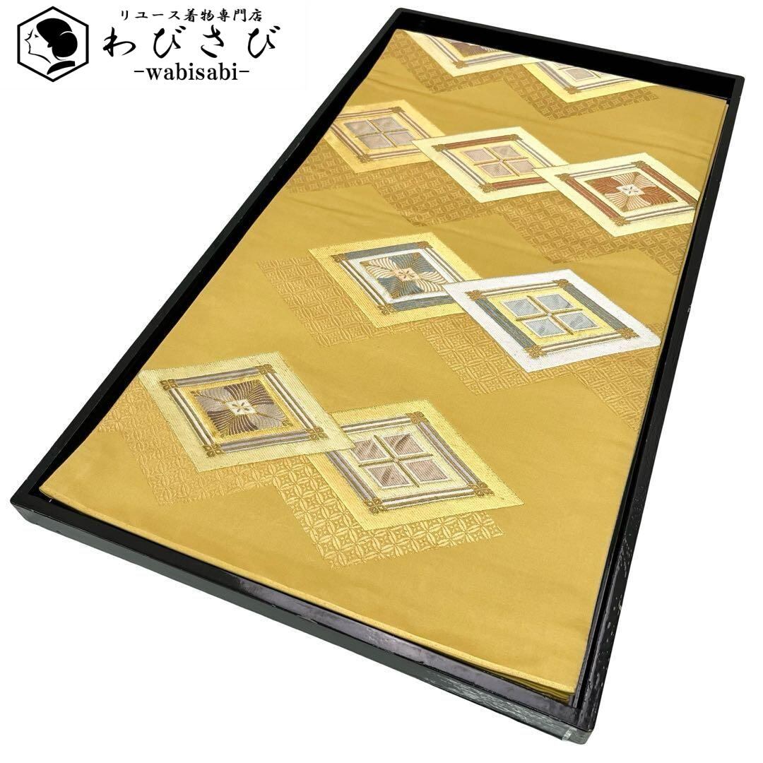 袋帯 菱形模様 七宝 金銀糸 濃卵色 フォーマル O-4530 着物 きもの kimono 和服 和装 中古 リサイクル着物 【送料無料】