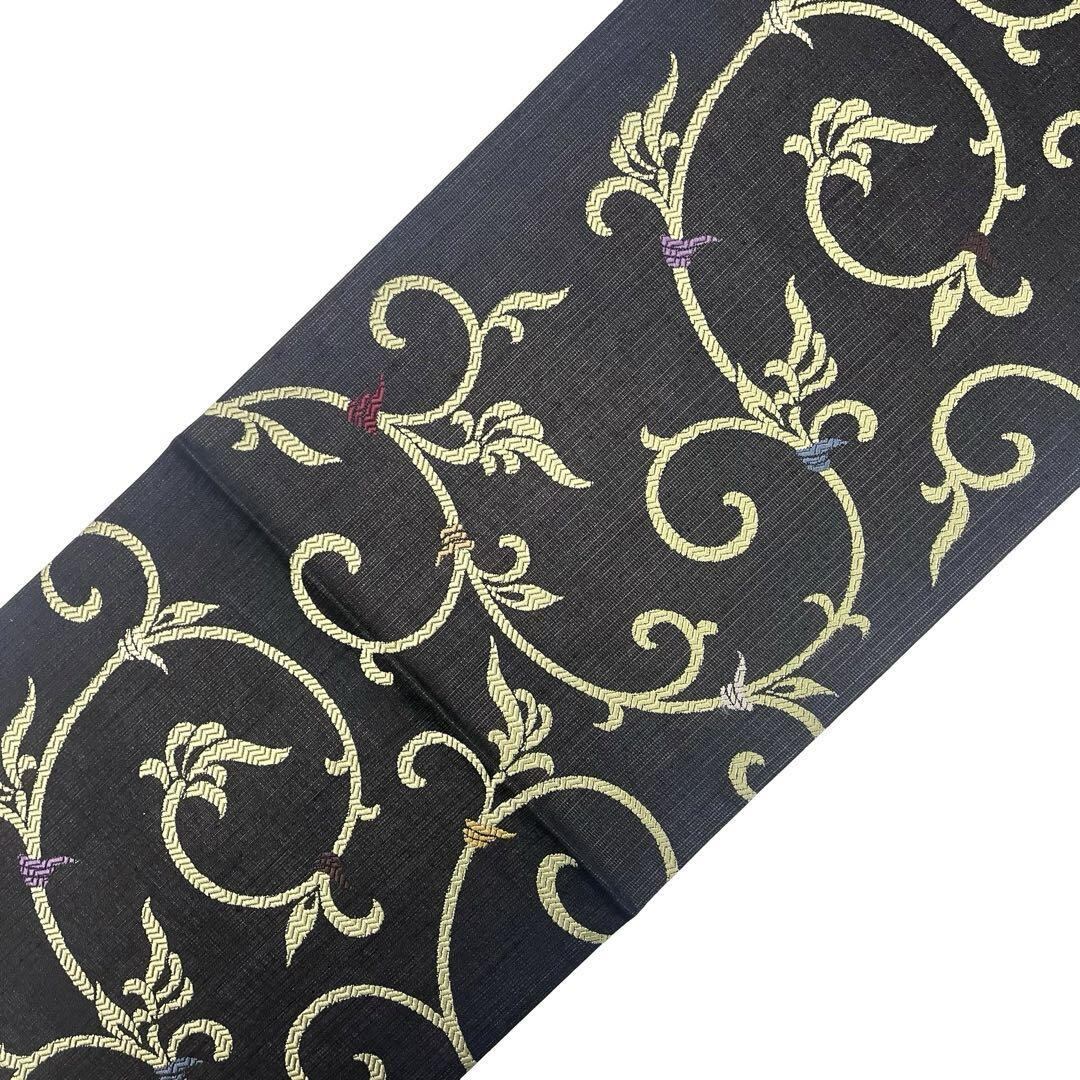 袋帯 モダンな唐草模様 黒色 カジュアル O-4510 着物 きもの kimono 和服 和装 中古 リサイクル着物 【送料無料】