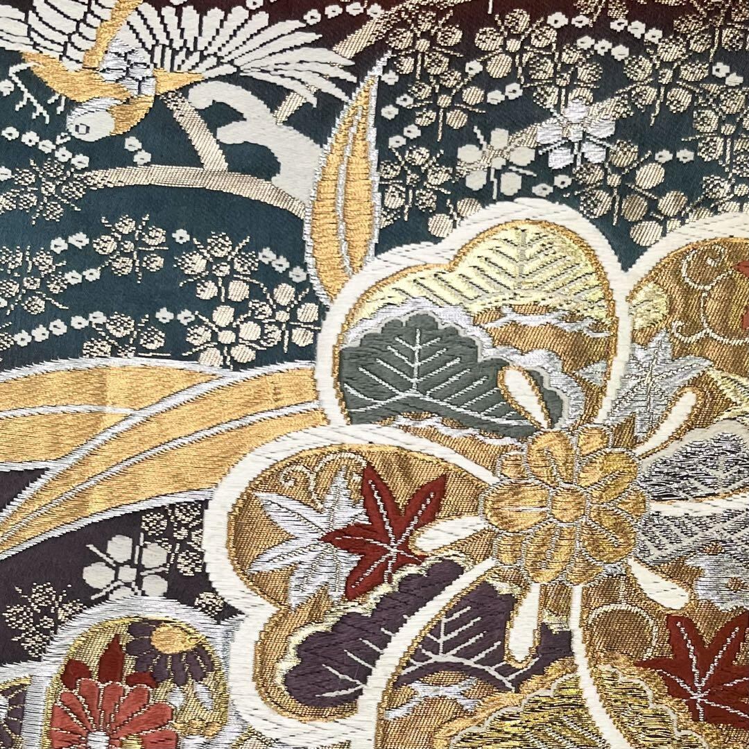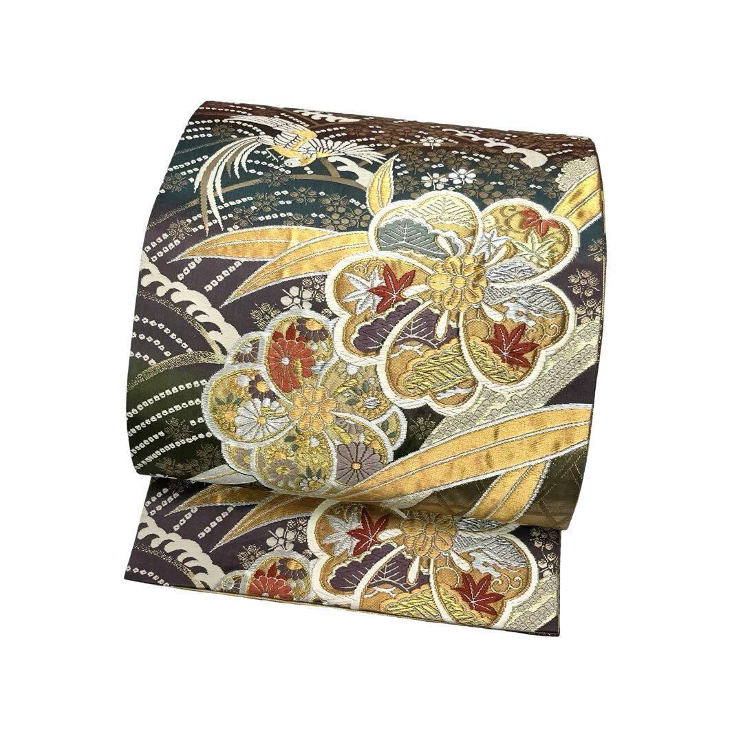 袋帯 花模様 鳥 波模様 金銀糸 振袖 O-4533 着物 きもの kimono 和服 和装 中古 リサイクル着物 【送料無料】
