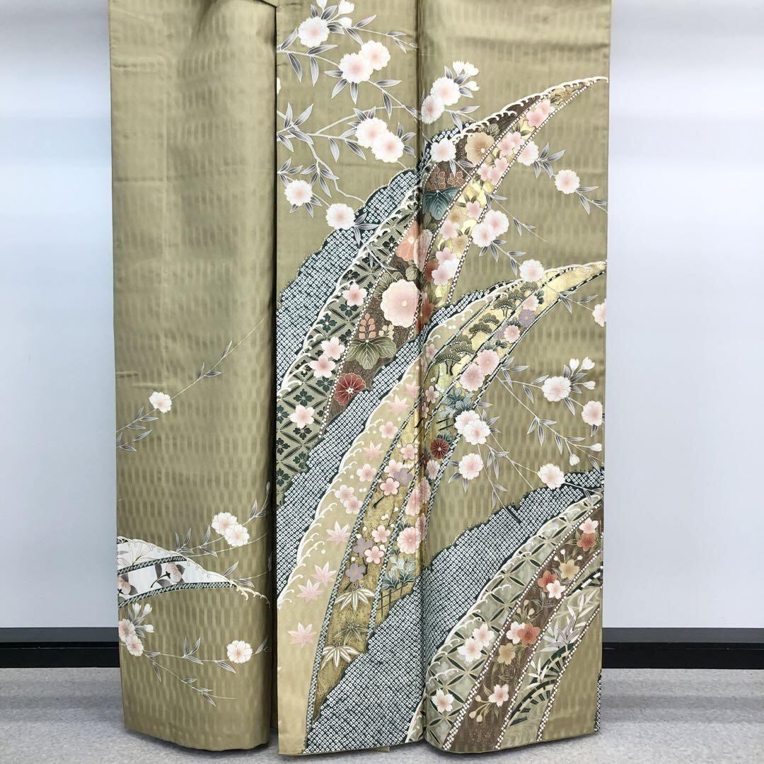 付下げ 染大島 久郎 美しい花模様 金彩 枯色 K-4285 着物 きもの kimono 和服 和装 中古 リサイクル着物 【送料無料】
