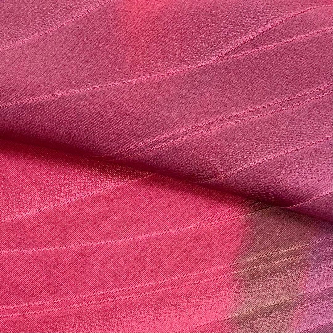紅色ベースのお色味に暈しの柄裄が素敵なお品でございます。