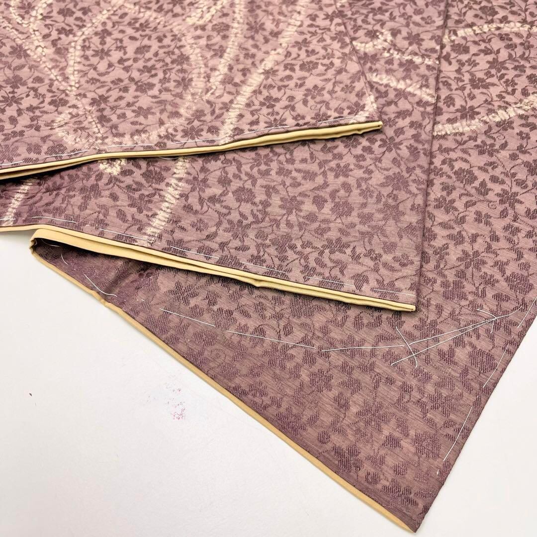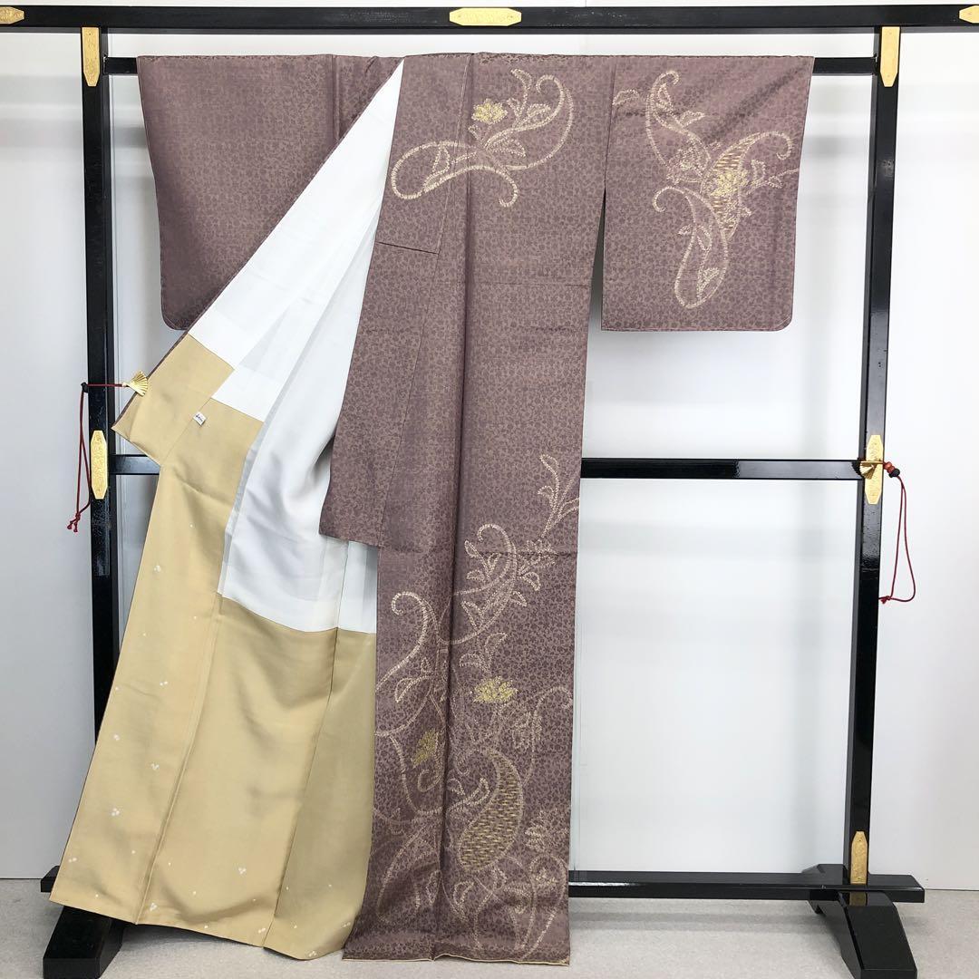 訪問着 絞り 抽象花模様 金彩 小豆鼠色 しつけ糸 トールサイズ K-4287