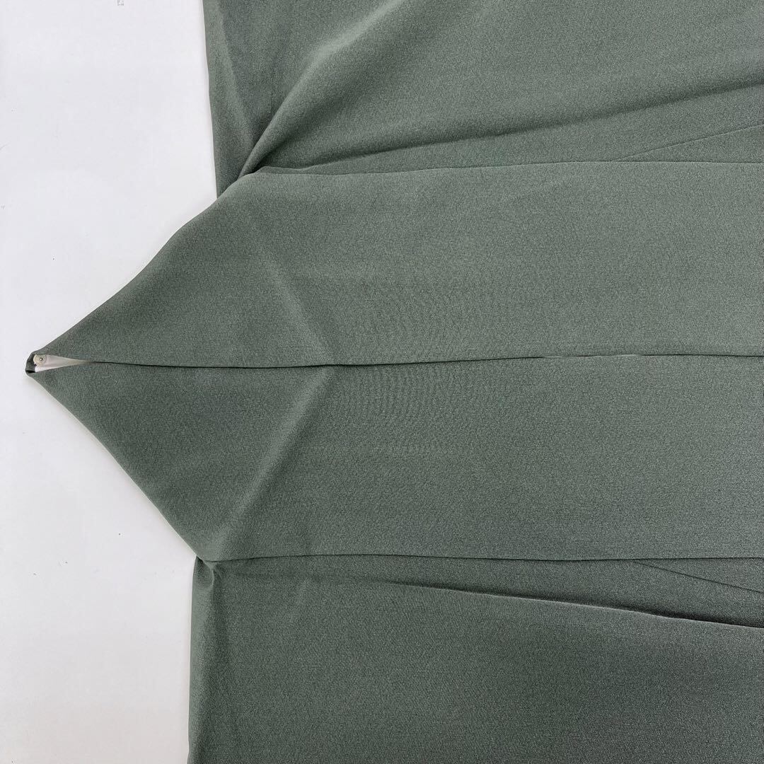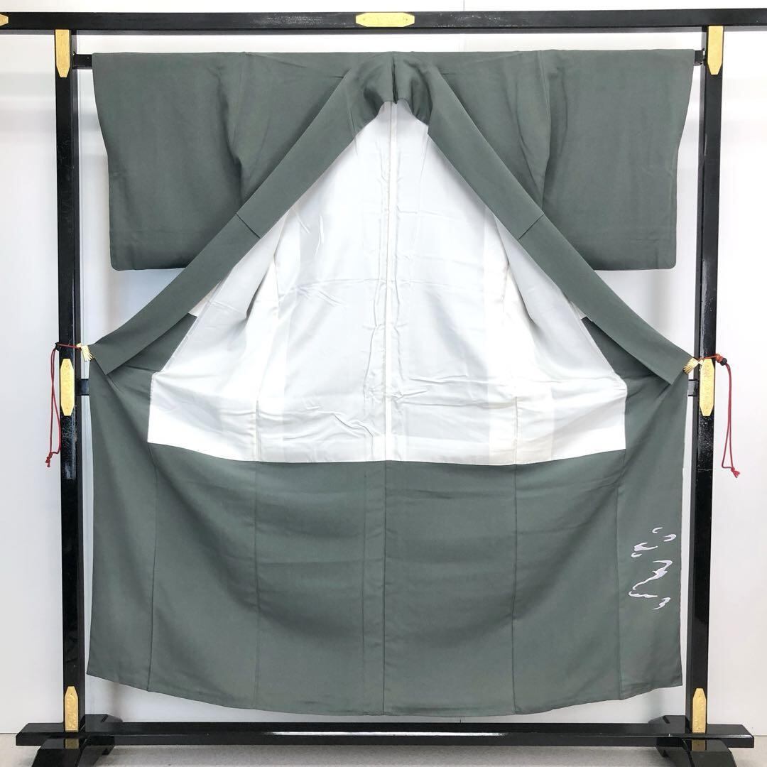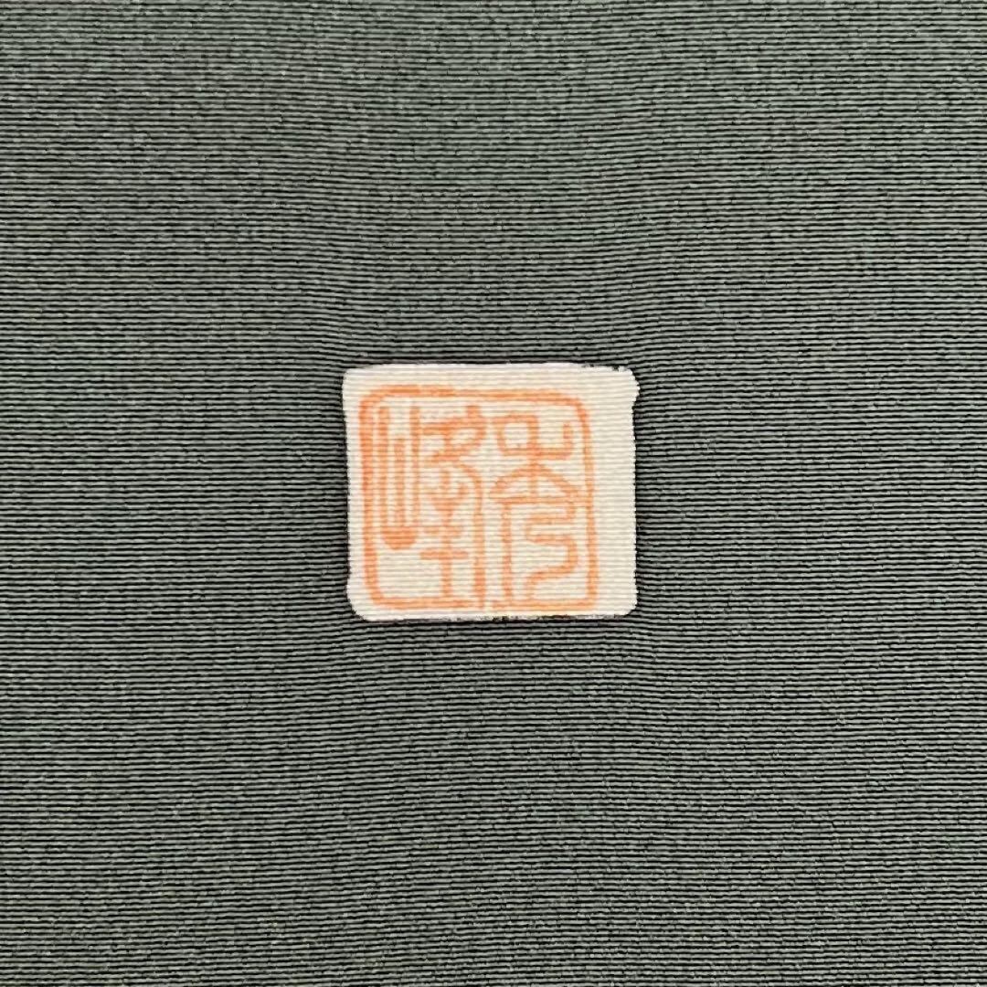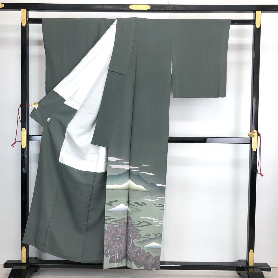 千種鼠色の落ち着きのあるお色味に暈し、遠山、波模様などの風景柄がデザインされた素敵なお品でございます。