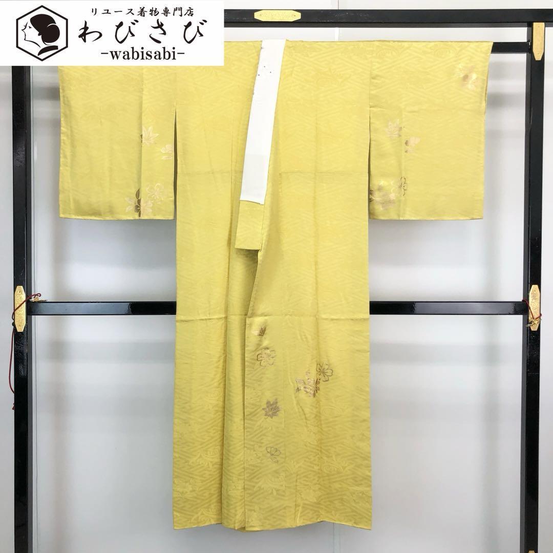 黄壁色のお色味に金彩の花模様の柄裄がデザインされた素敵なお品でございます。