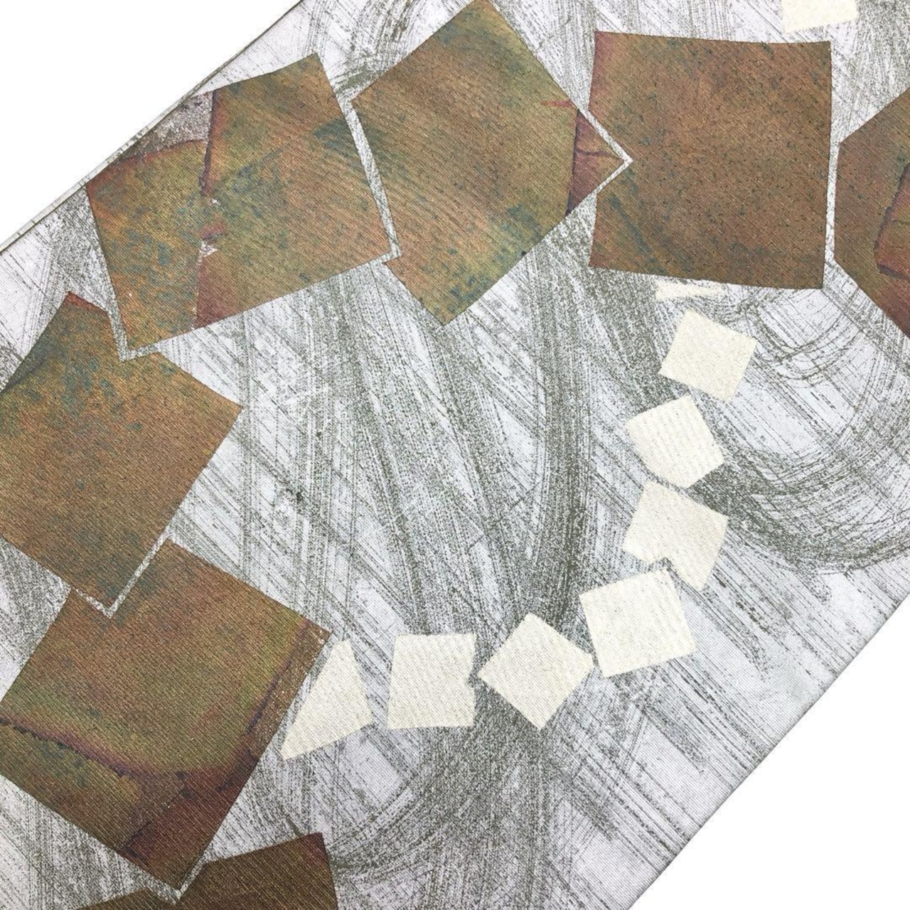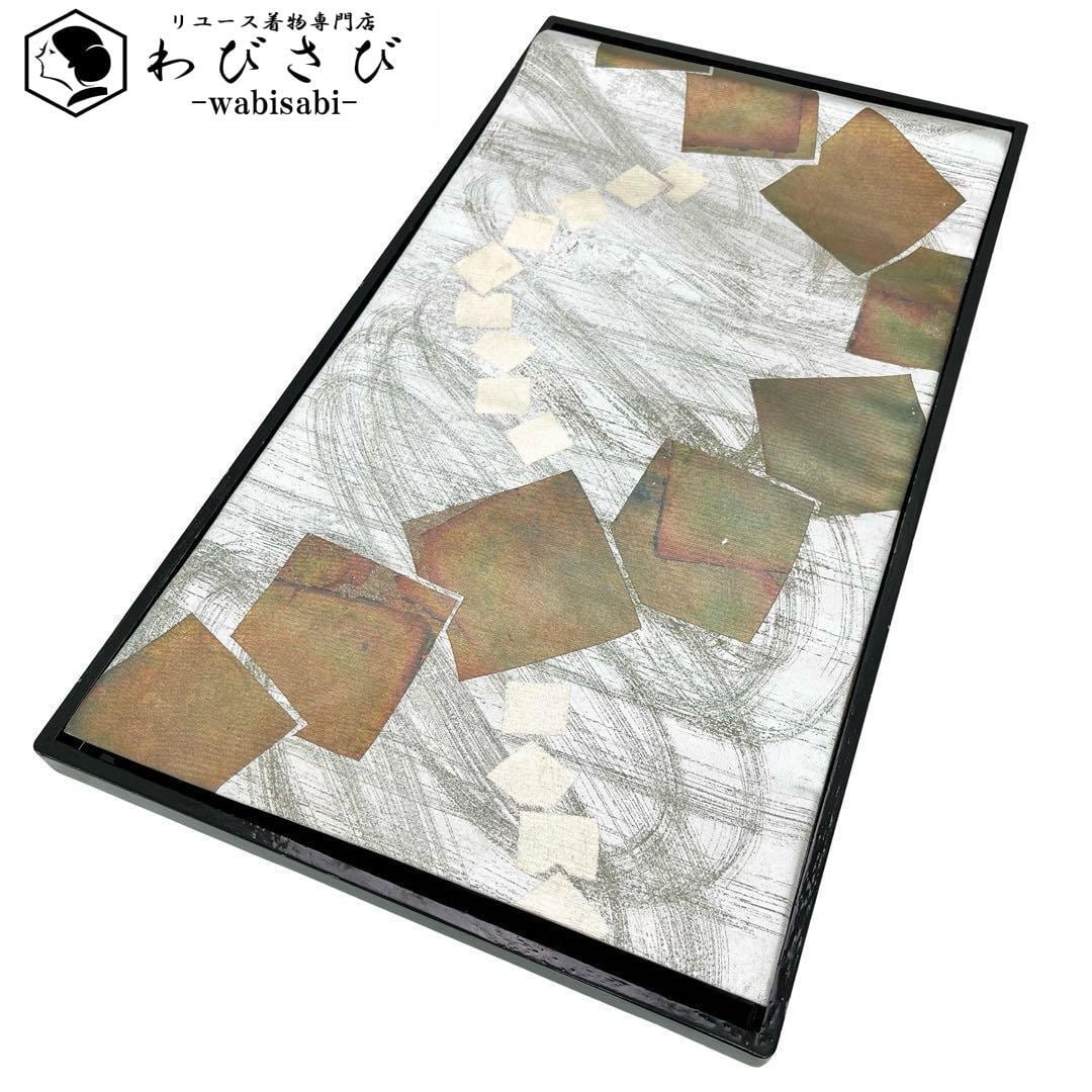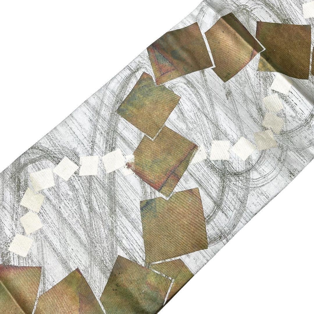 袋帯 内蔵寮 モダン柄 連なる四角模様 金銀糸 銀色 O-4538 着物 きもの kimono 和服 和装 中古 リサイクル着物 【送料無料】