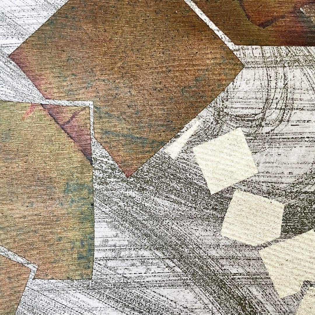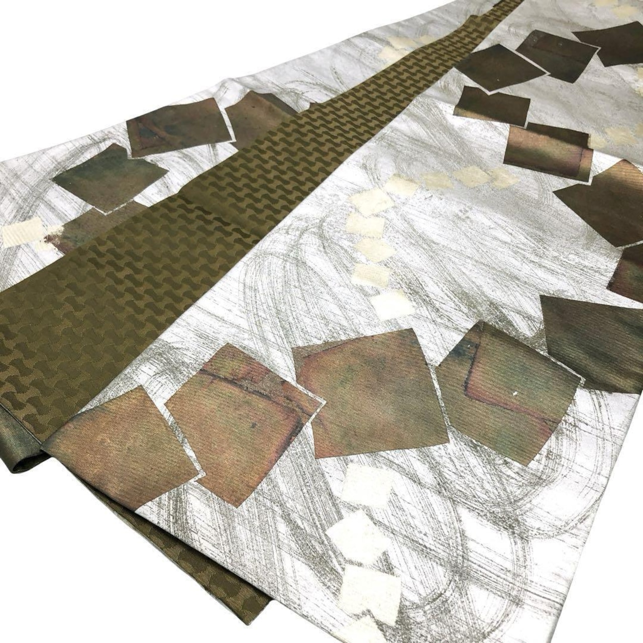 宮廷織物の製織を行っていた内蔵寮、銀色ベースの本革のような独特の手触り、連なる四角模様がデザインされたモダンな雰囲気の素敵な柄裄のお品でございます。、