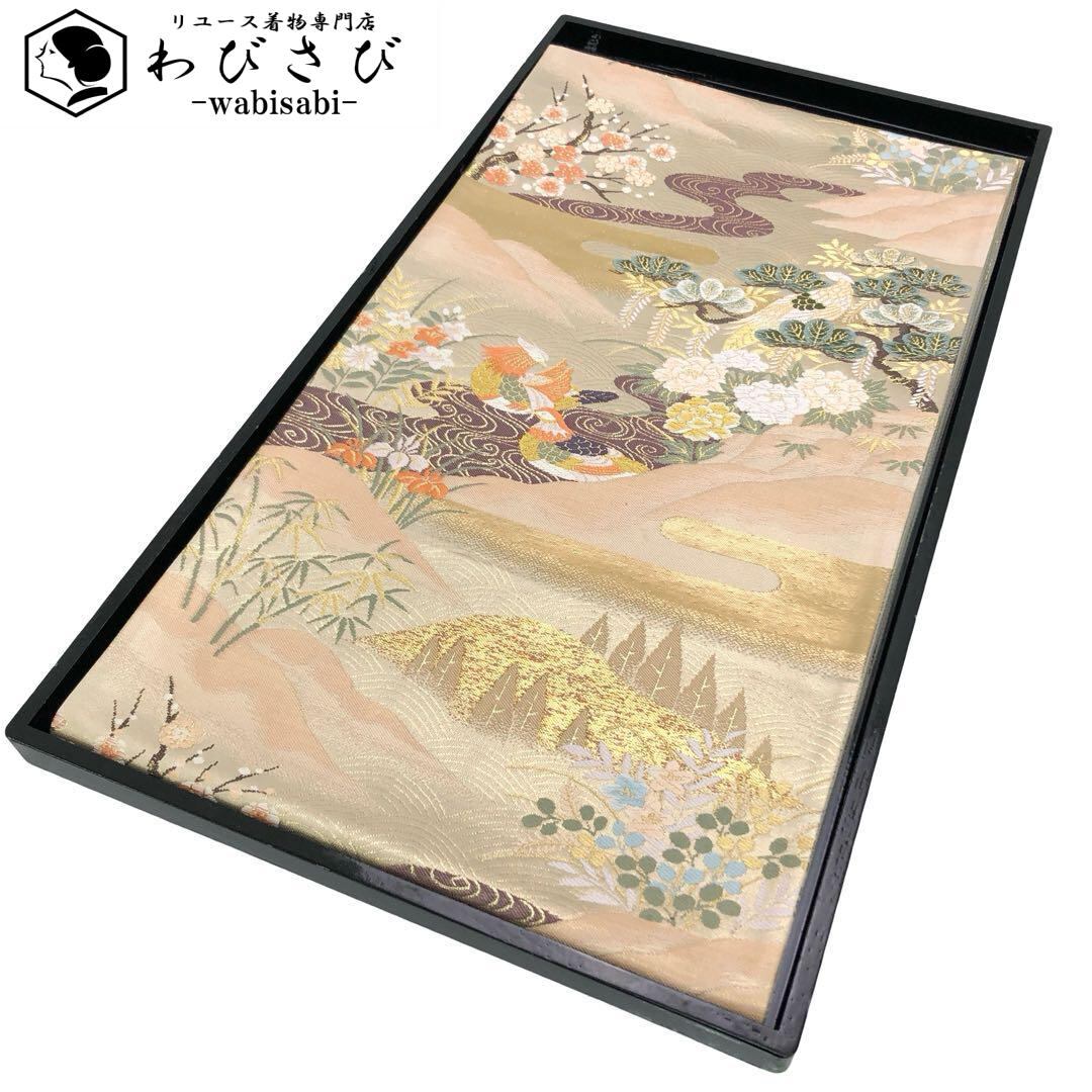 袋帯 本金箔 花模様 鴛鴦 流水 金糸 金色 フォーマル O-4550 着物 きもの kimono 和服 和装 中古 リサイクル着物 【送料無料】