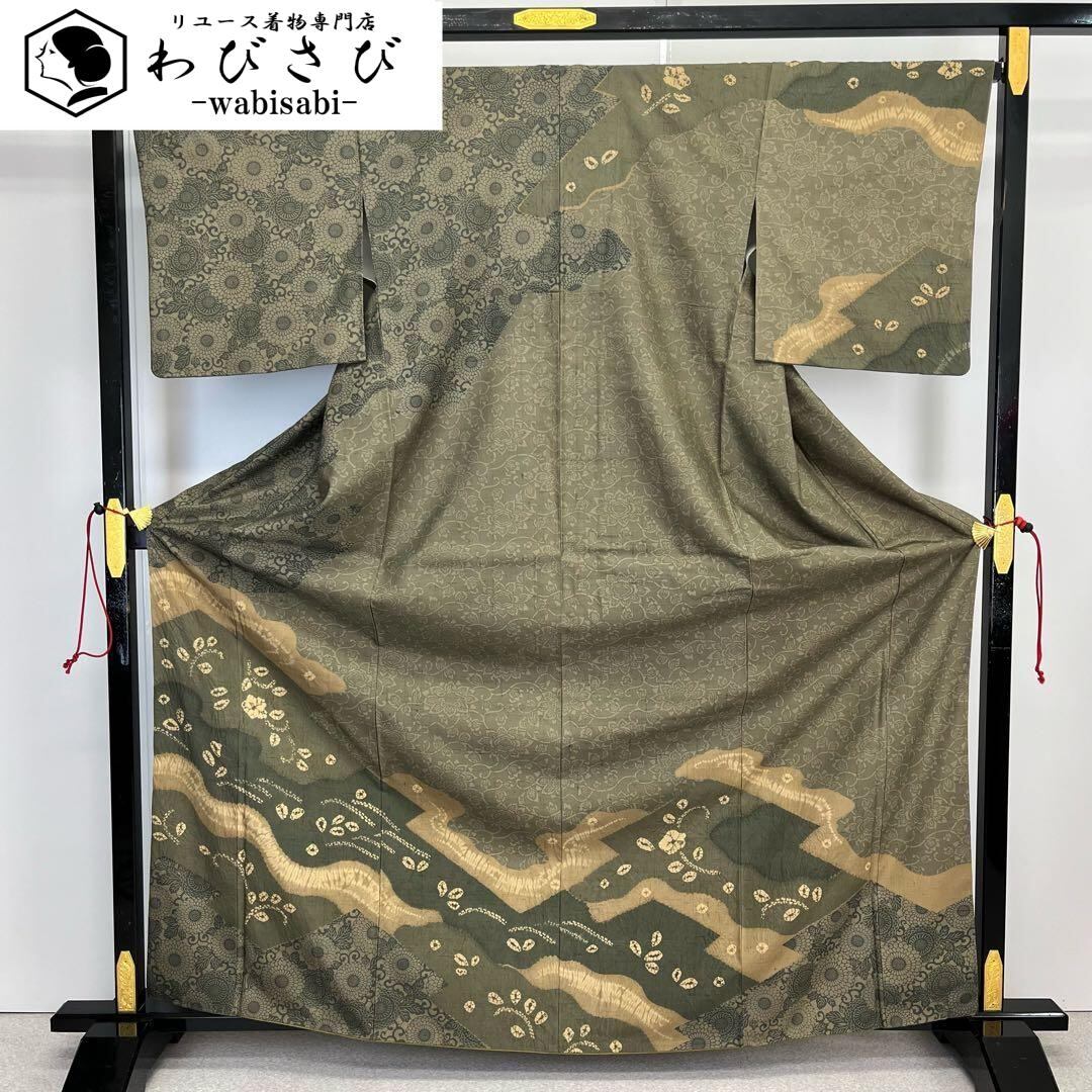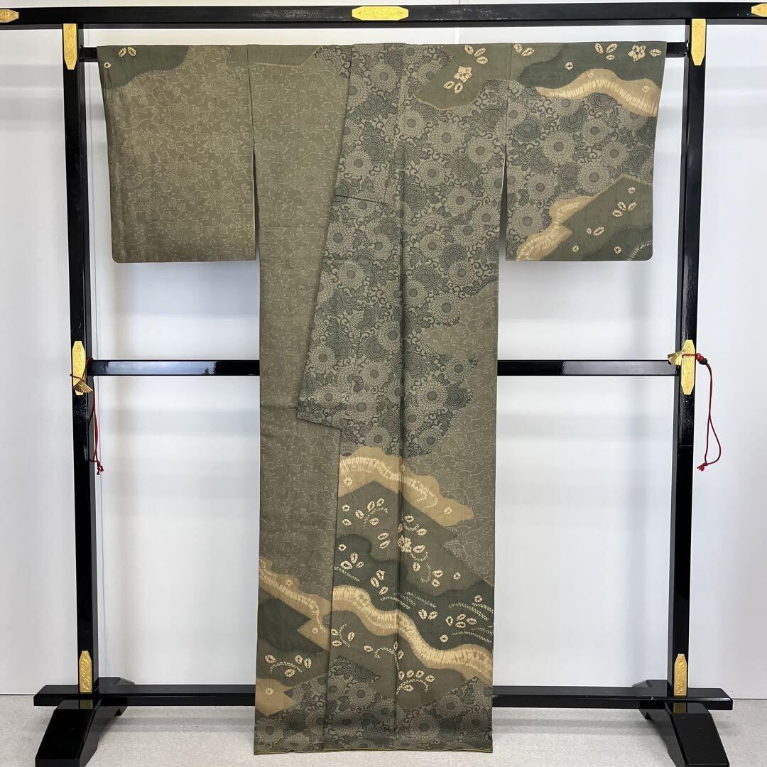 付下げ 絞り染 型染 花唐草模様 トールサイズ K-4272 着物 きもの kimono 和服 和装 中古 リサイクル着物 【送料無料】