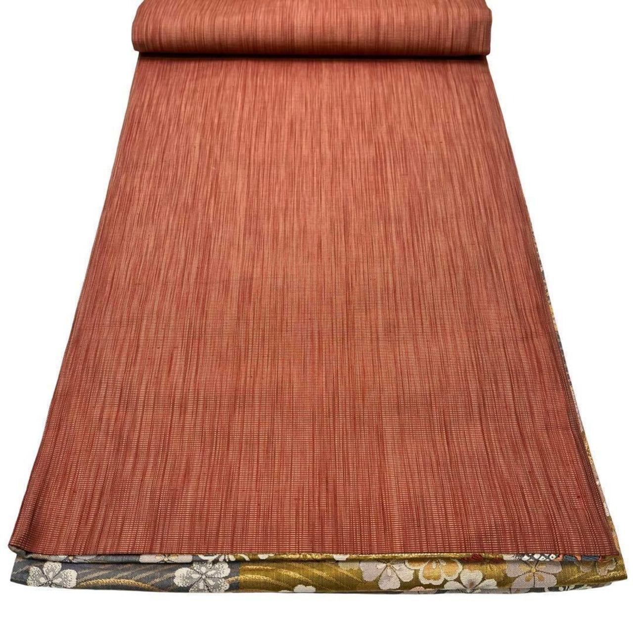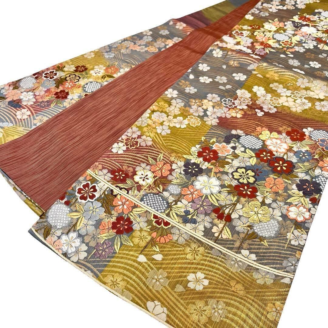 色鮮やかな色彩に桜の美しい花柄、波模様がデザインされた素敵な柄裄のお品でございます。