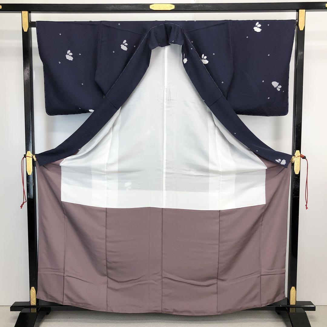 小紋 飛び柄 絞りの兎 褐色 しつけ糸 ガード加工 K-4304