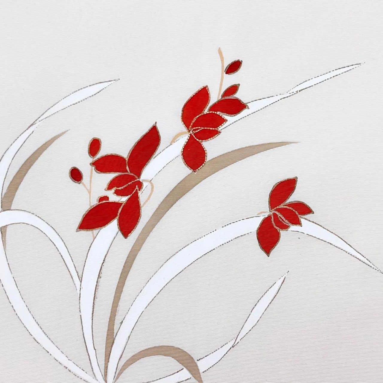 桜色の上品なお色味の塩瀬に上品な花模様がデザインされた素敵なお品でございます。