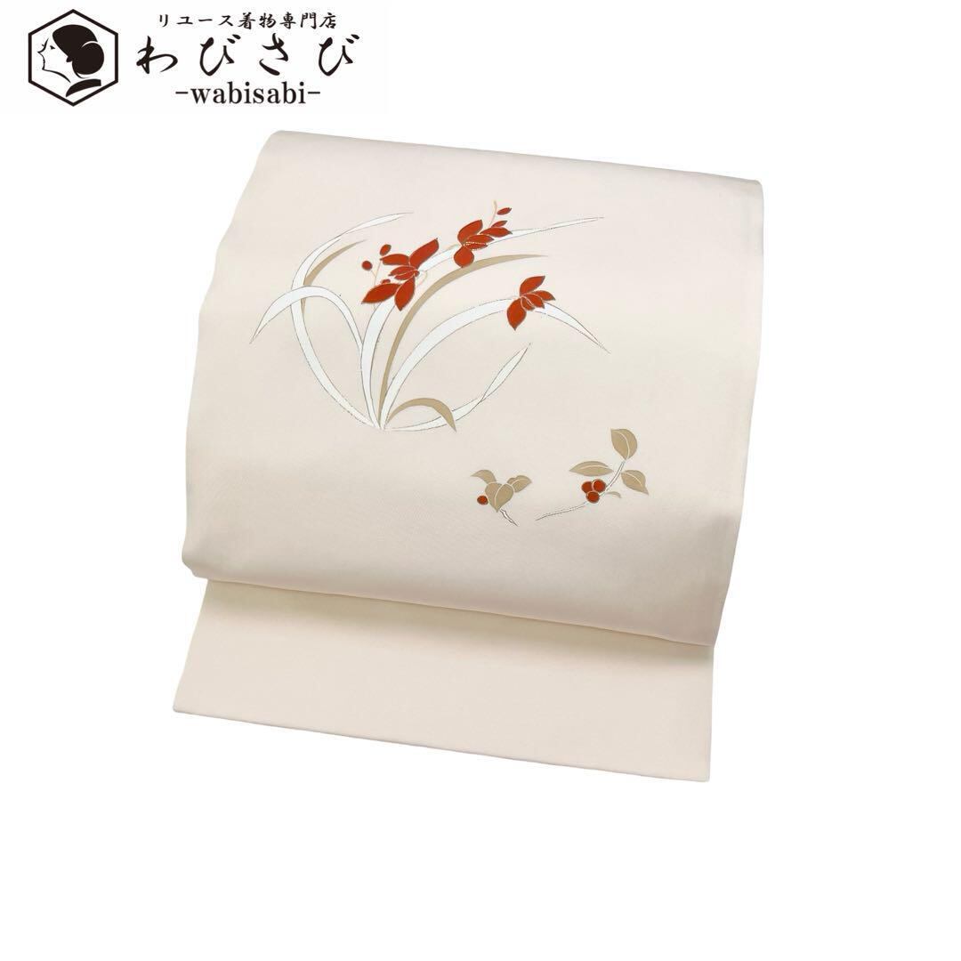 名古屋帯 塩瀬 上品な花模様 金駒刺繍 金彩 桜色 O-4557 着物 きもの kimono 和服 和装 中古 リサイクル着物 【送料無料】