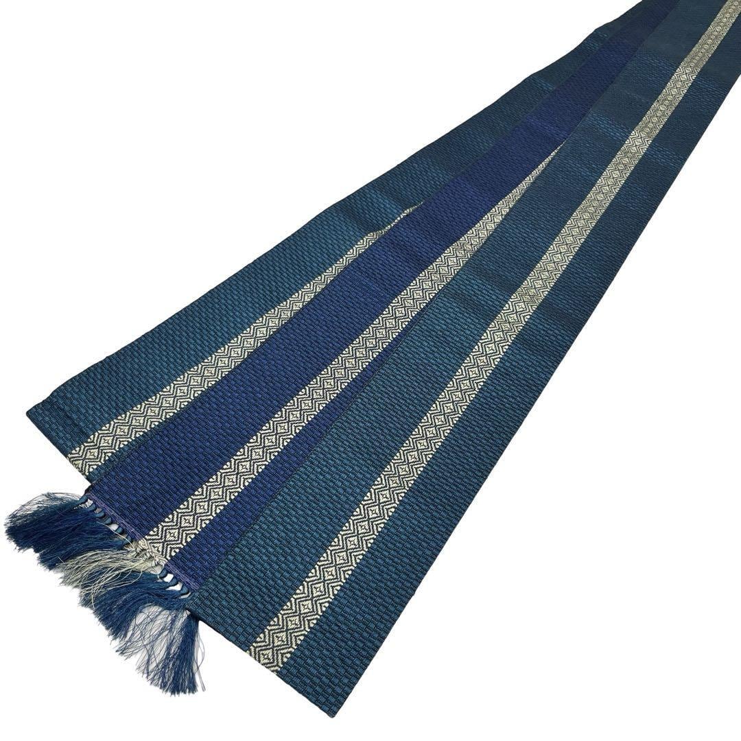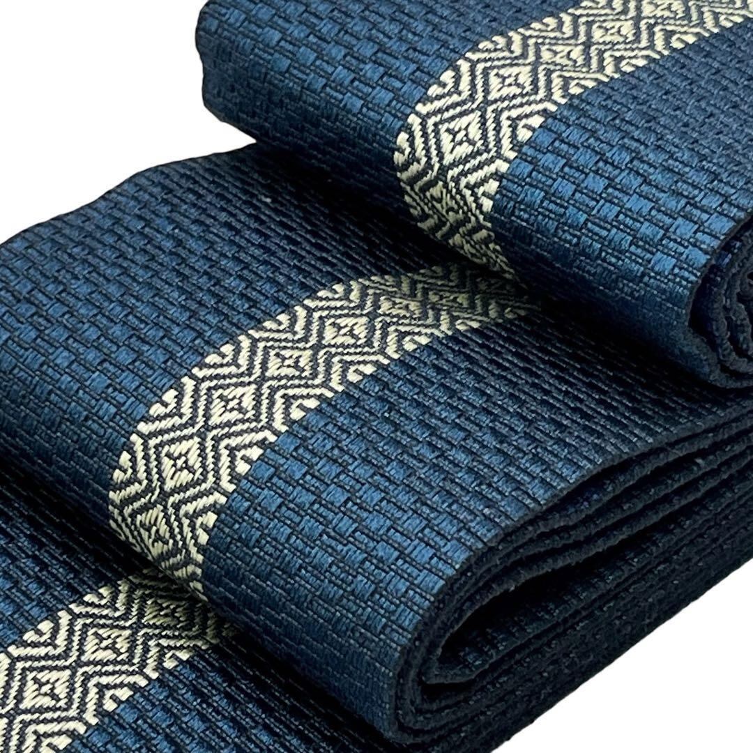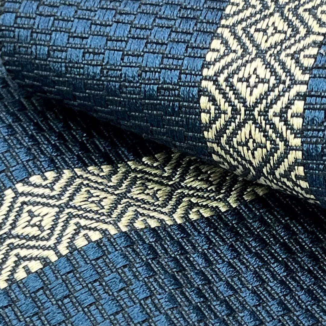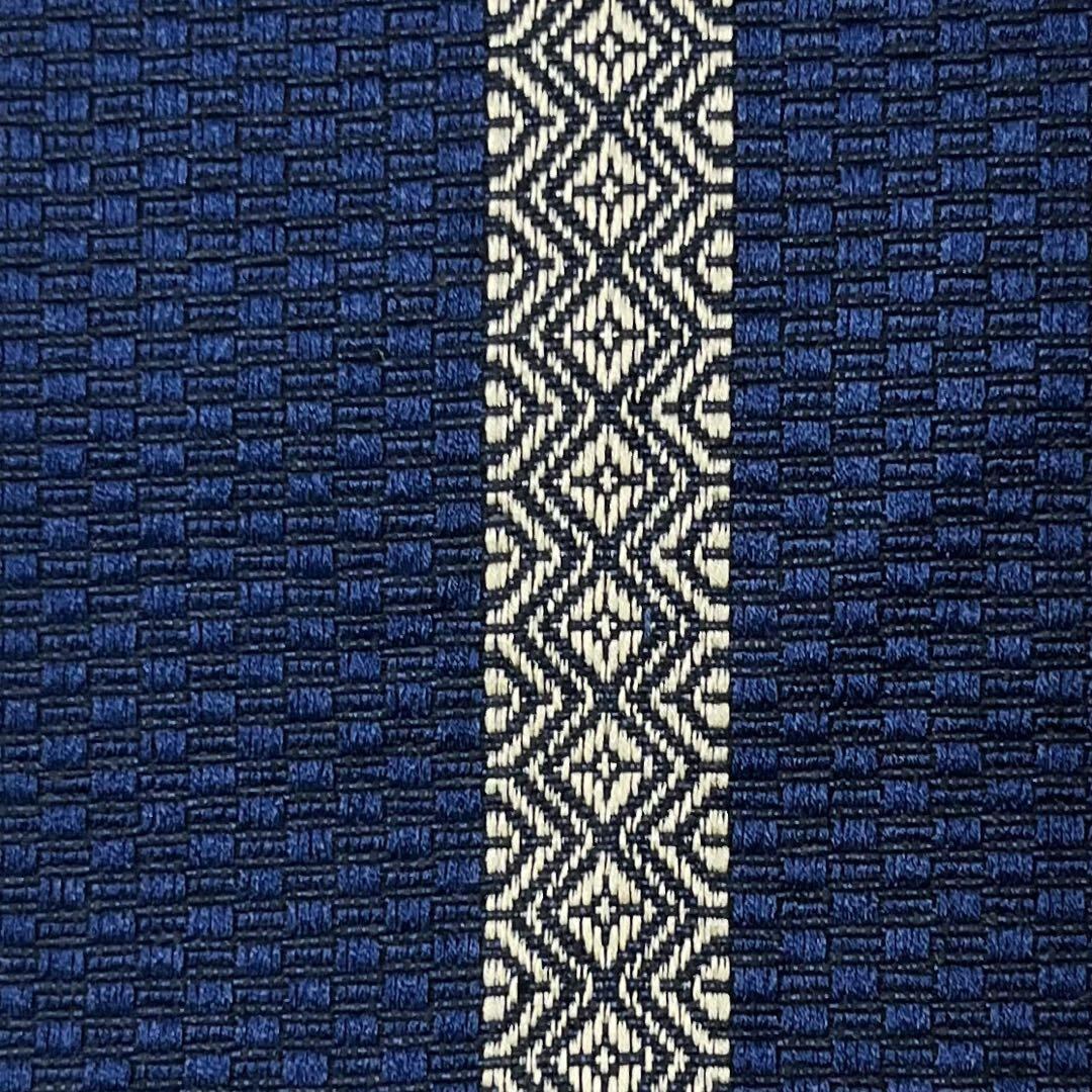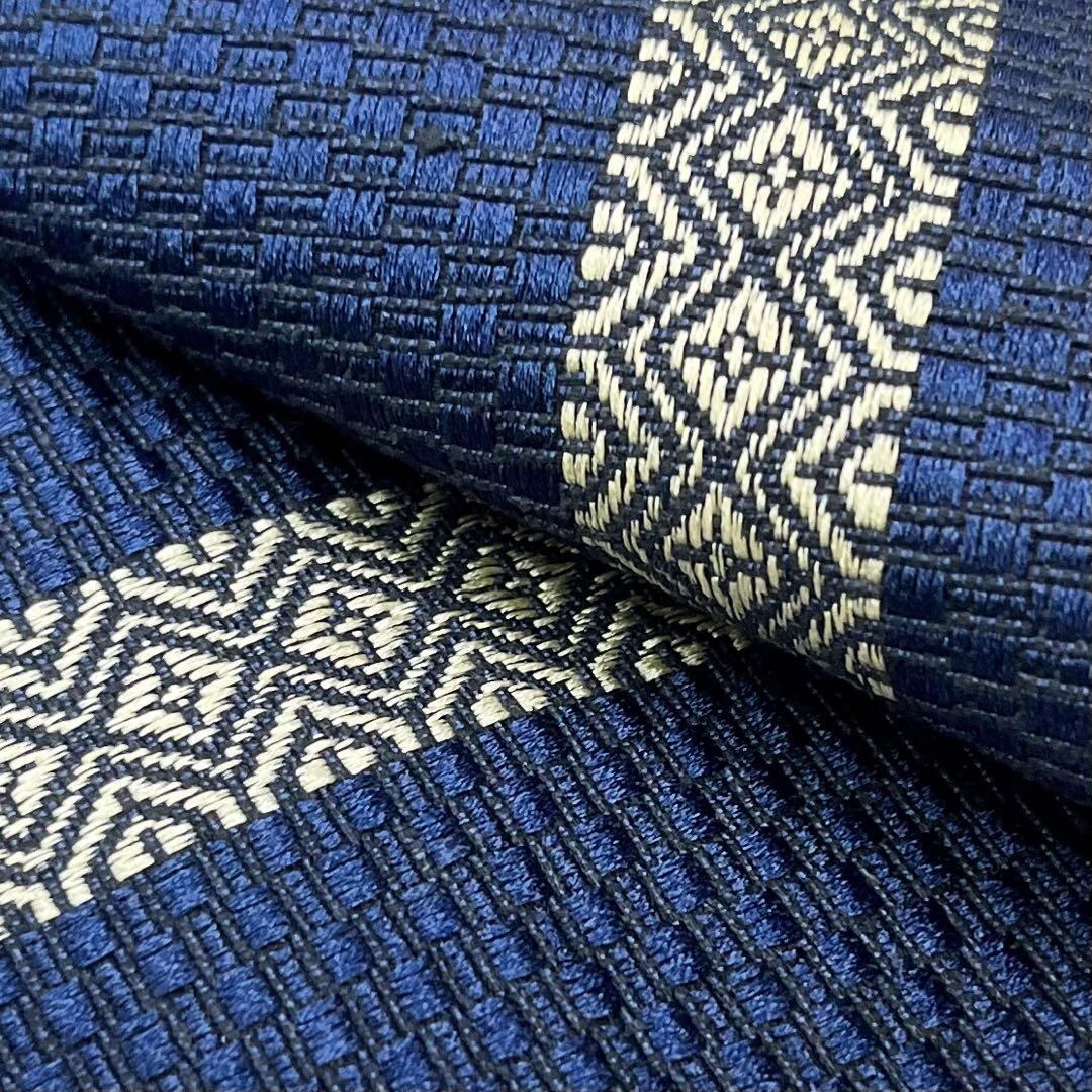 深藍色と藍褐色の僅かな異なる青味が楽しめる美しい縦柄の織模様がデザインされた素敵なお品でございます。