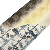 袋帯 リバーシブル 美しい染柄 格子柄 グラデーション 金通し O-4537 着物 きもの kimono 和服 和装 中古 リサイクル着物 【送料無料】