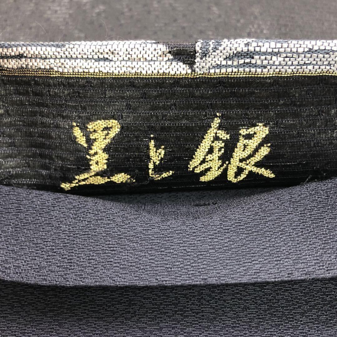 袋帯 黒と銀 モダンな三角模様 黒色 銀糸 O-4566 着物 きもの kimono 和服 和装 中古 リサイクル着物 【送料無料】