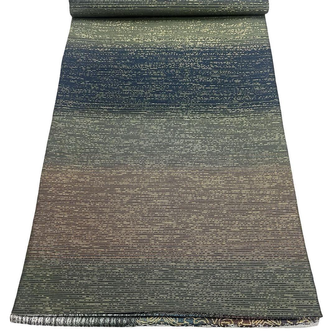 本草木染の雰囲気の良い色彩に金通し、花唐草模様の柄裄に無地のグラデーションの両面楽しめる素敵なお品でございます。