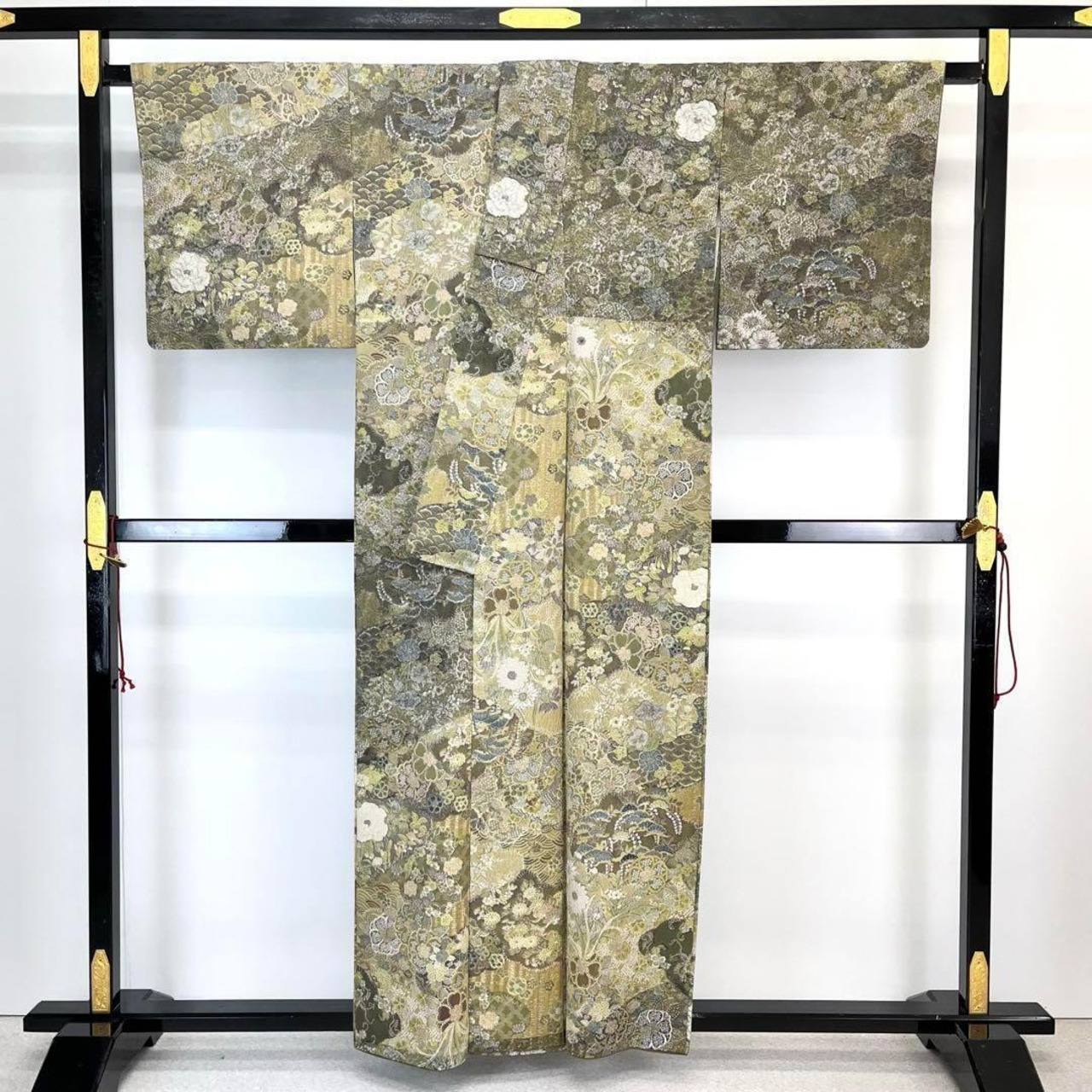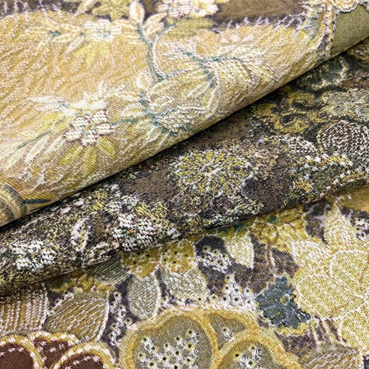 璃寛茶色ベースの落ち着きのある色彩、立体感のある天目織の美しい花柄模様がデザインされた素敵なお品でございます。