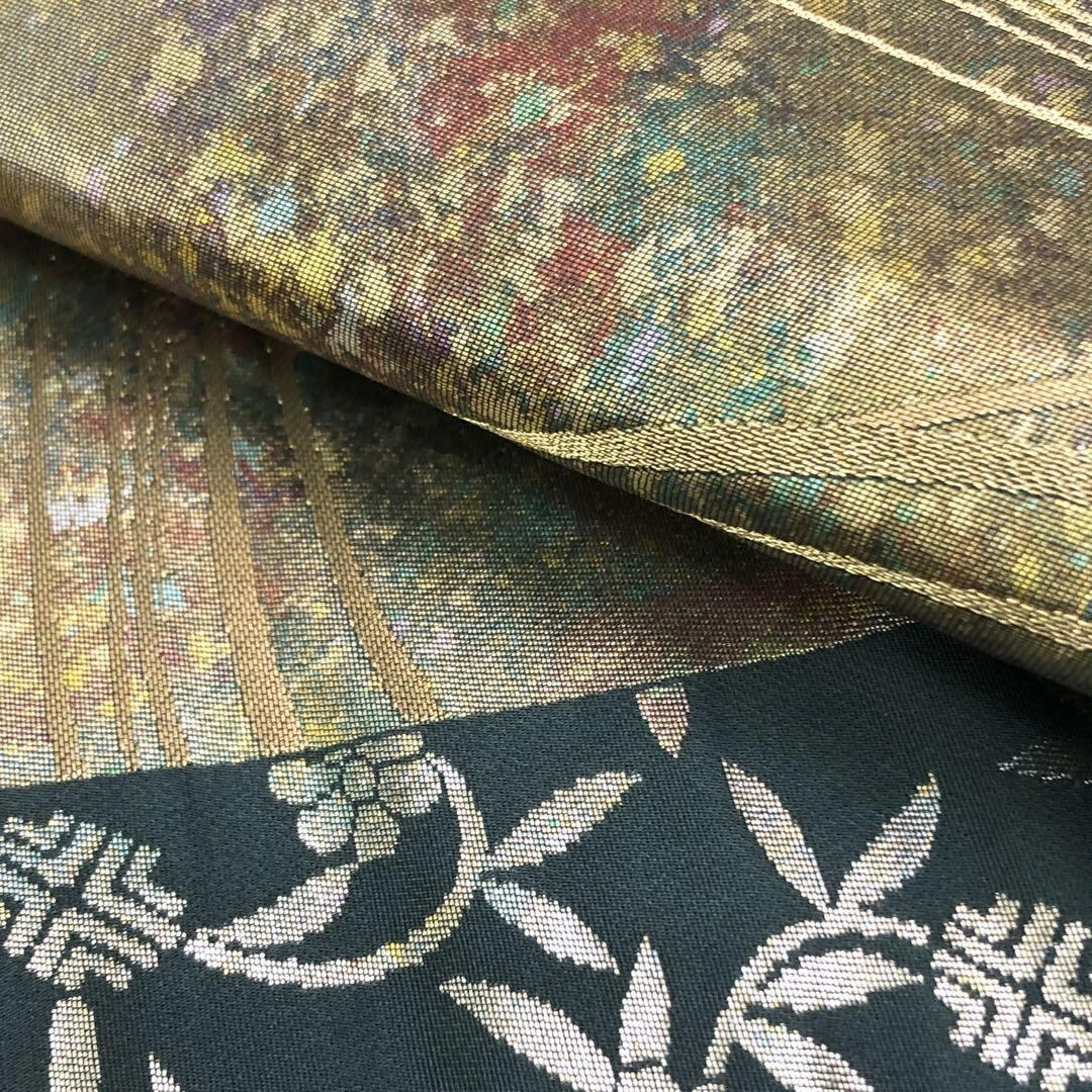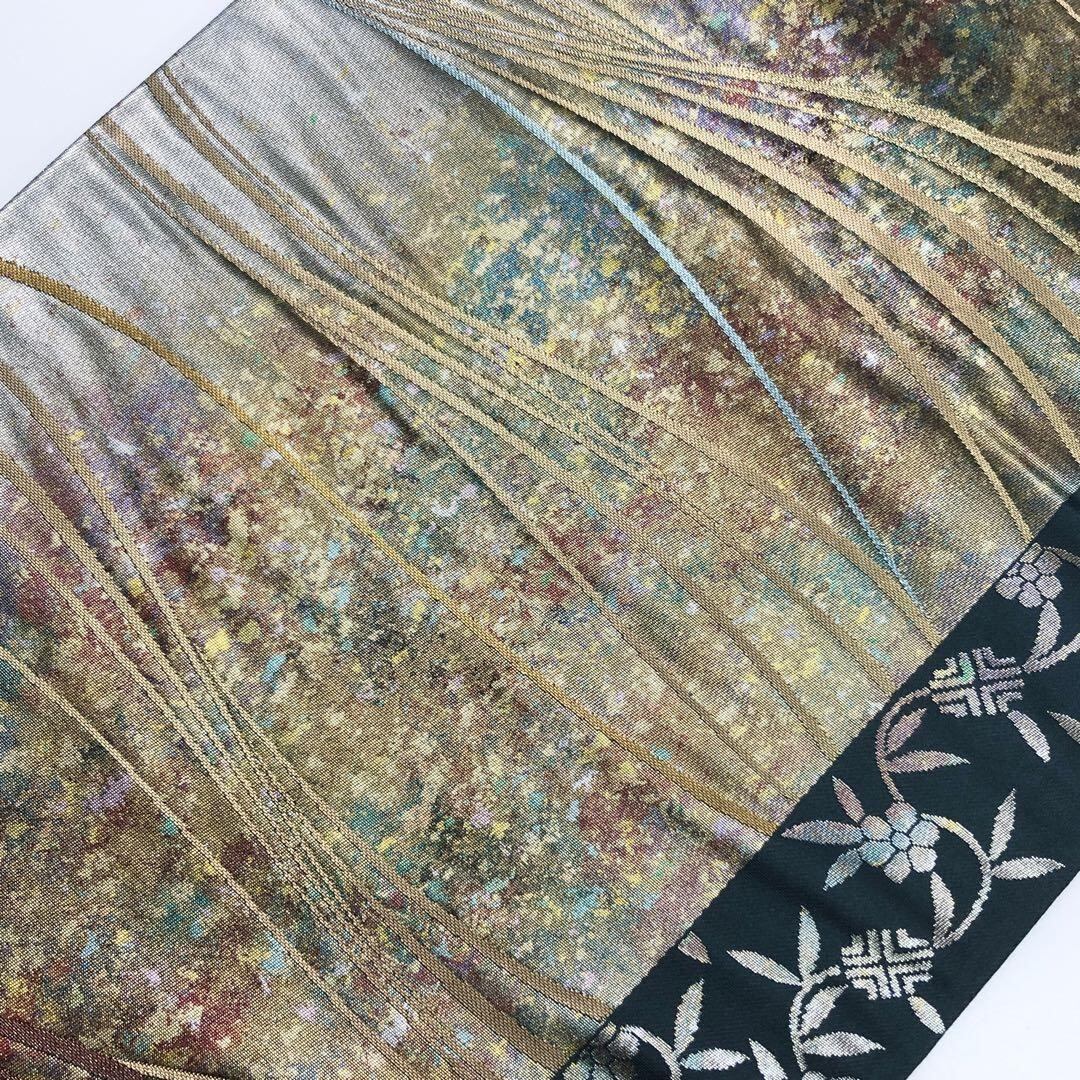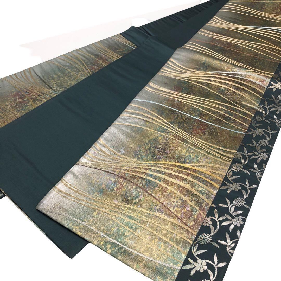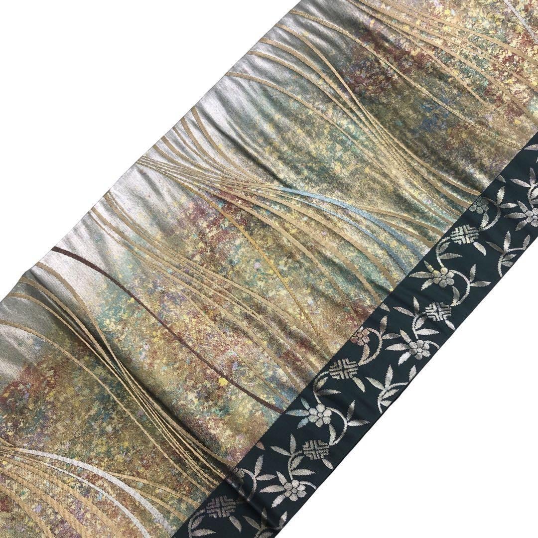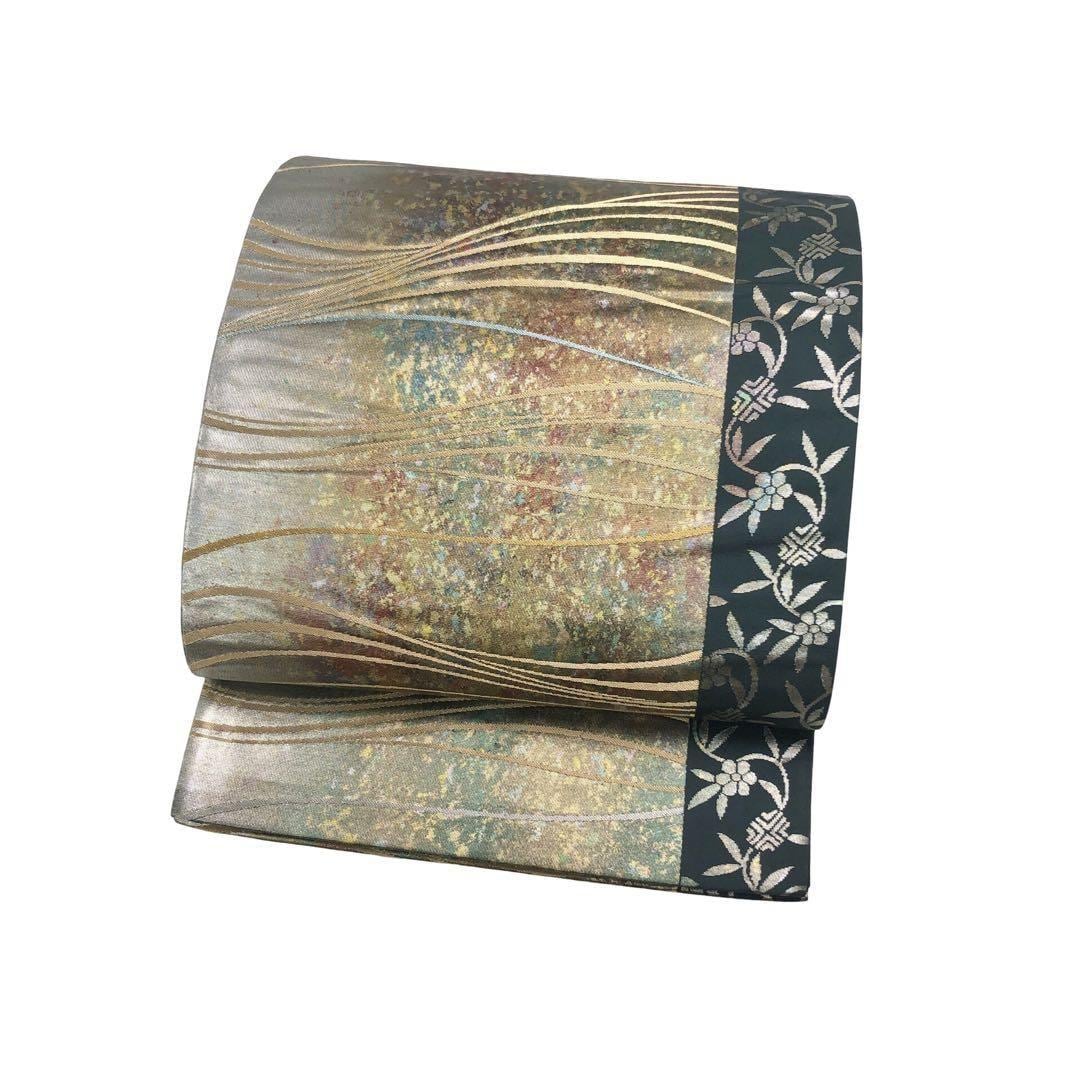 袋帯 皇金漆宝箔 曲線模様 鉄色 O-4583 着物 きもの kimono 和服 和装 中古 リサイクル着物 【送料無料】