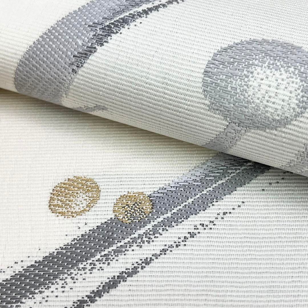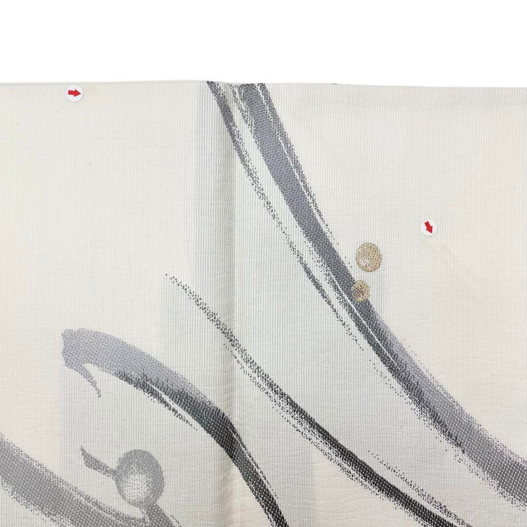 乳白色のお色味に故郷の川遊と題された流水模様に水飛沫のようなドット柄がデザインされた上品な柄裄のお品でございます。