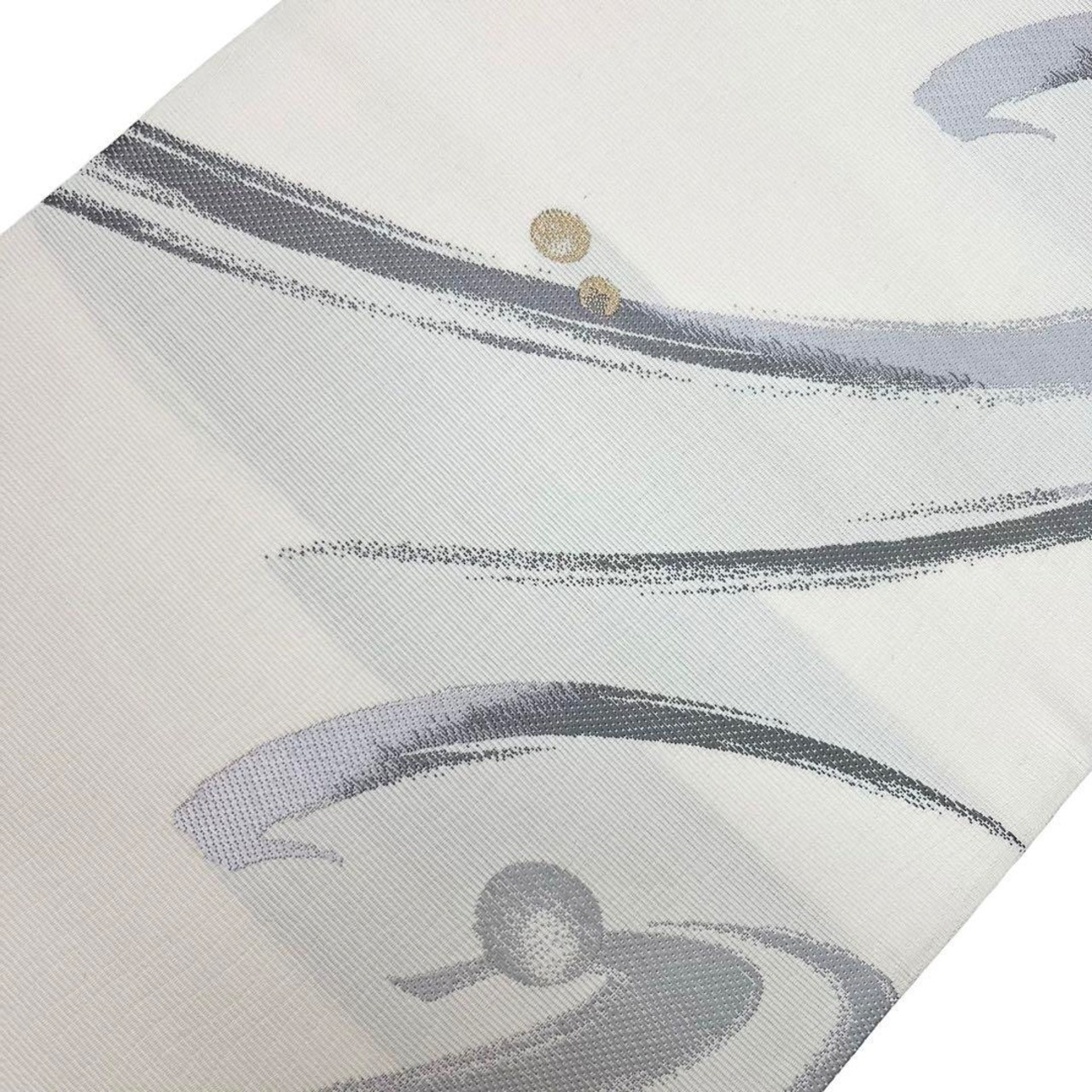 袋帯 故郷の川遊 上品な流水模様 金糸 乳白色 O-4580 着物 きもの kimono 和服 和装 中古 リサイクル着物 【送料無料】
