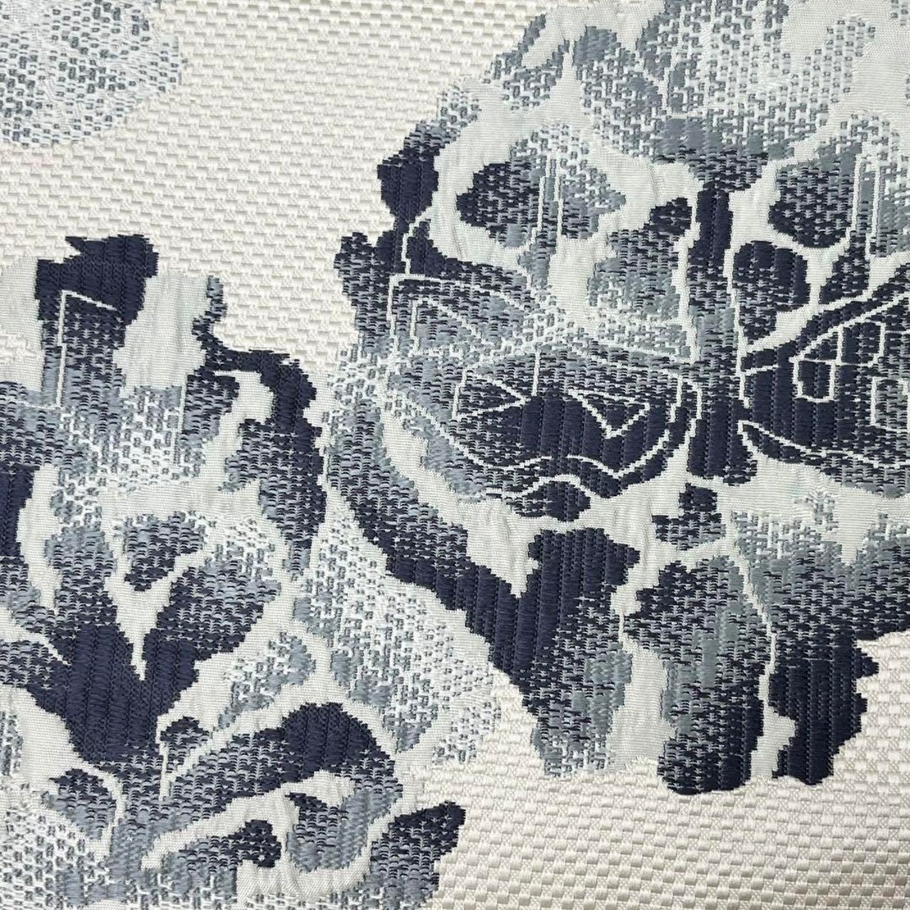 乳白色のお色味に抽象花模様の柄裄がデザインされた素敵なお品でございます。