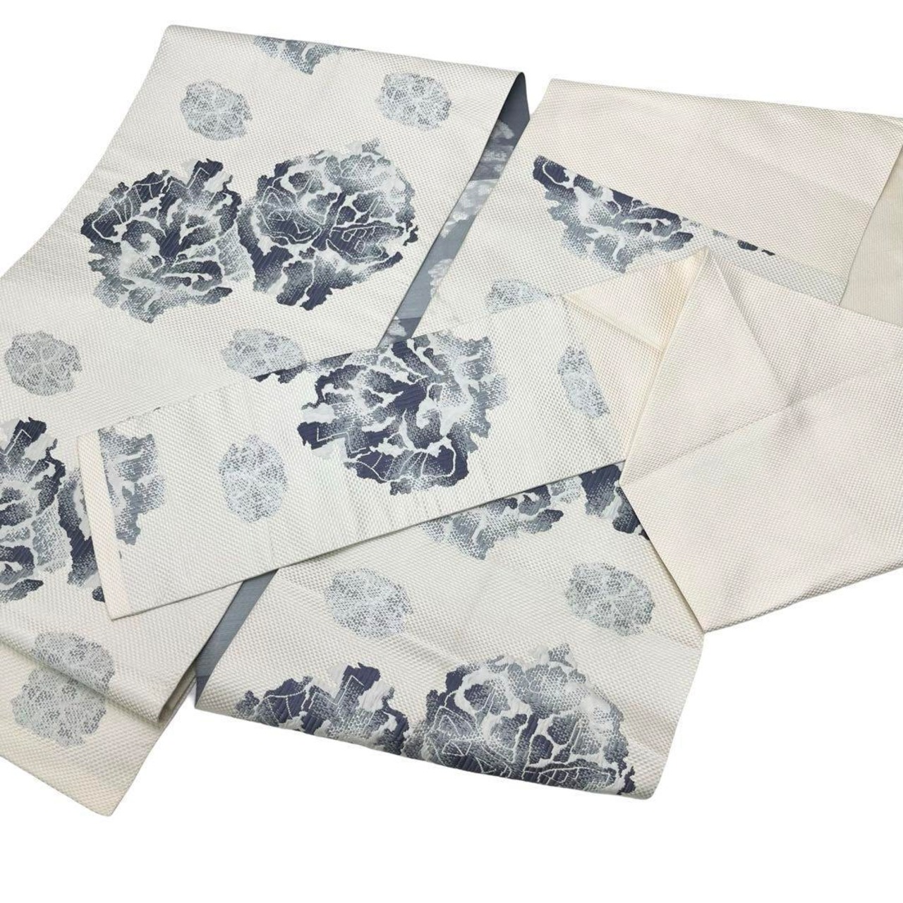 名古屋帯 抽象花模様 乳白色 O-4579 着物 きもの kimono 和服 和装 中古 リサイクル着物 【送料無料】