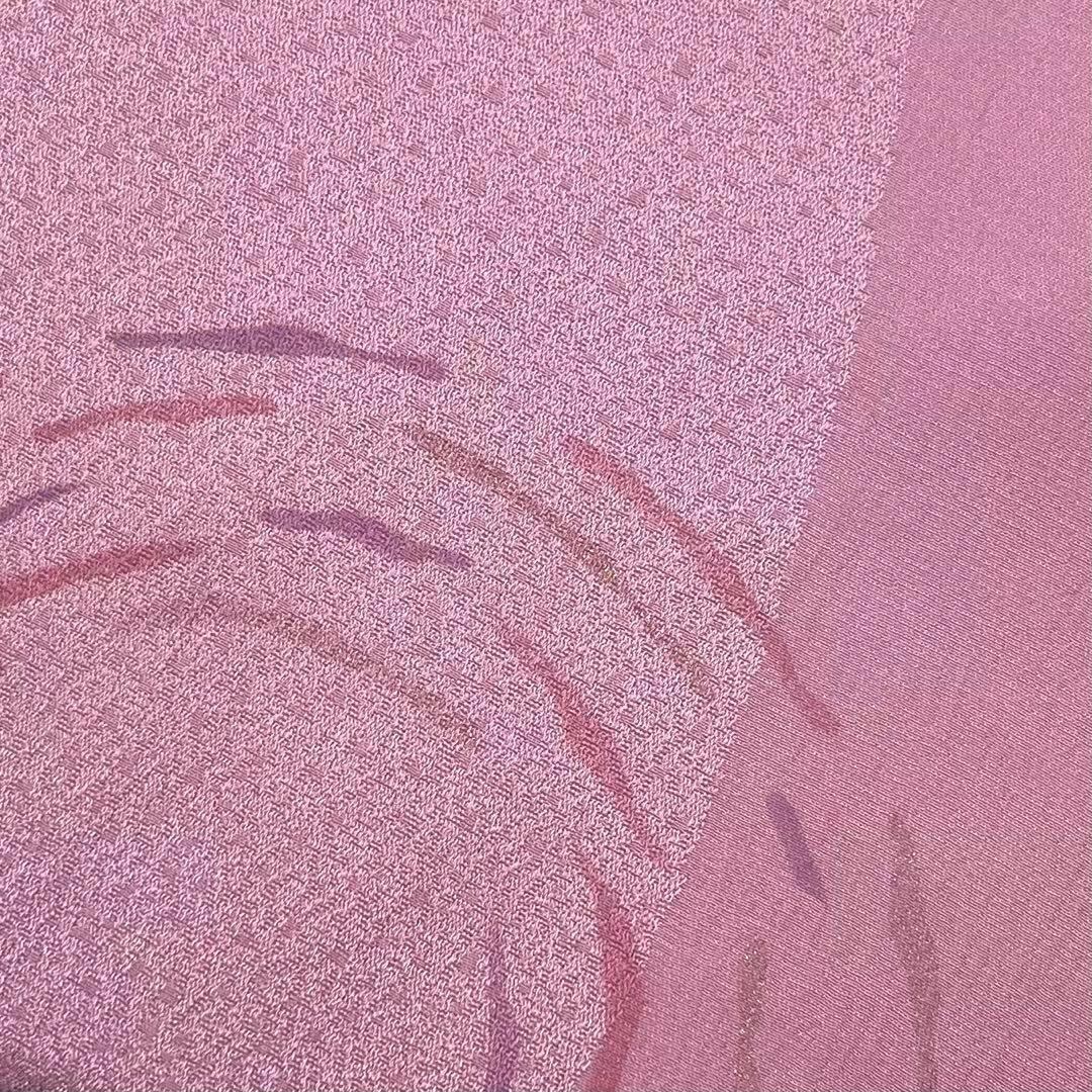 桃色に渦巻模様のような柄裄がデザインされた素敵なお品でございます。