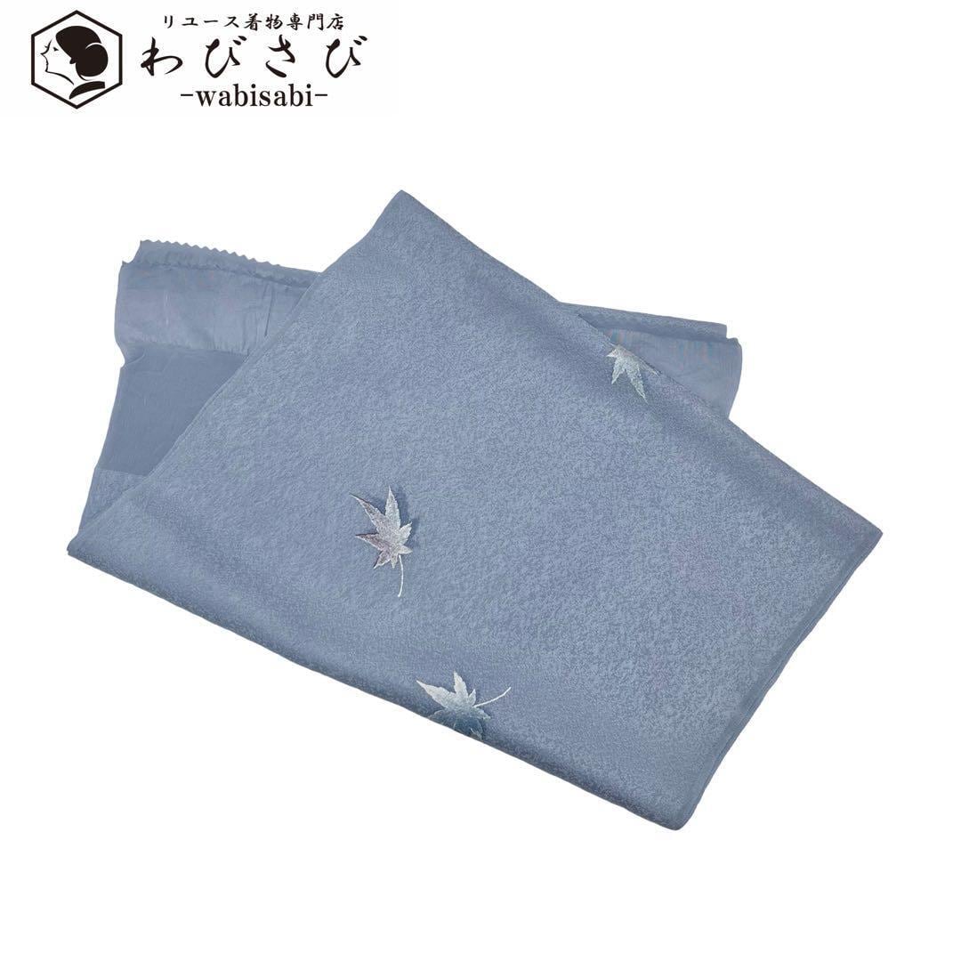 和装小物 帯揚げ 正絹 綸子 紅葉 灰青色 C-5419 着物 きもの kimono 和服 和装 中古 リサイクル着物 【送料無料】