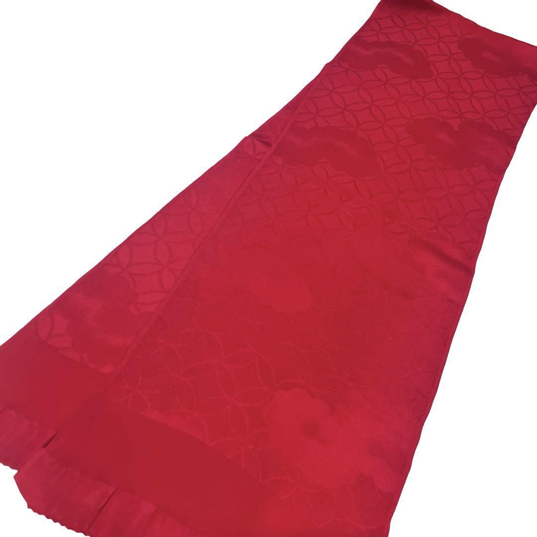 和装小物 帯揚げ 正絹 綸子 雲に七宝 赤色 C-5418 着物 きもの kimono 和服 和装 中古 リサイクル着物 【送料無料】