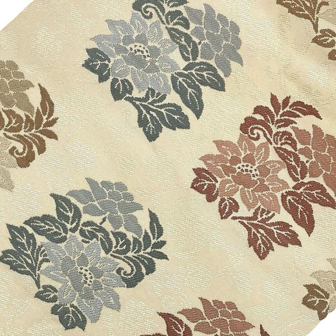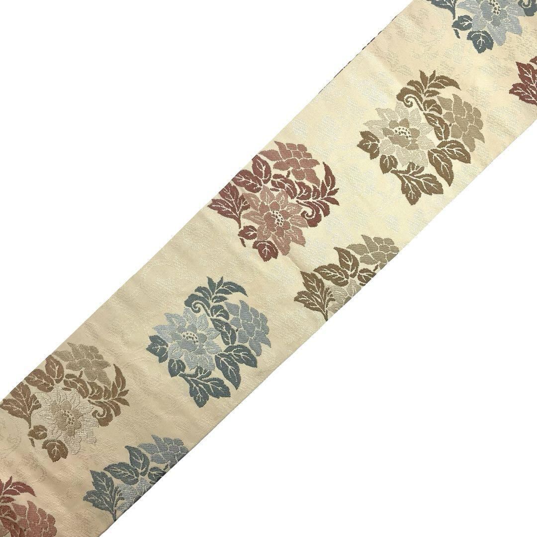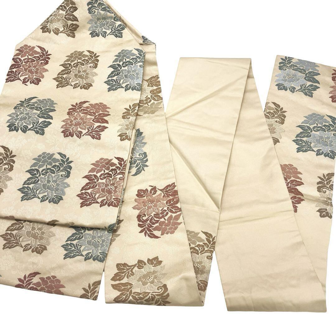 名古屋帯 花柄織模様 薄卵色 O-4598 着物 きもの kimono 和服 和装 中古 リサイクル着物 【送料無料】