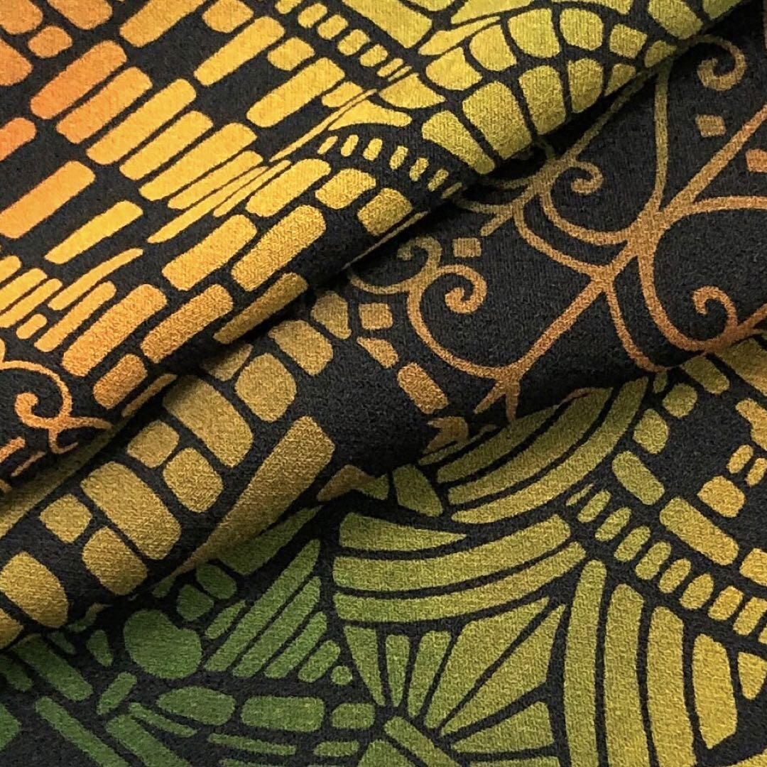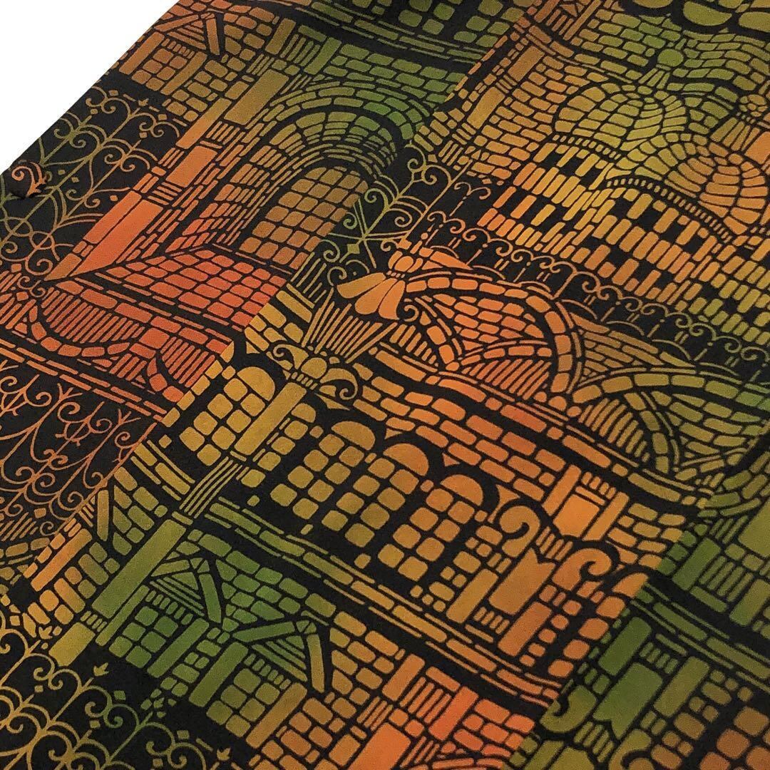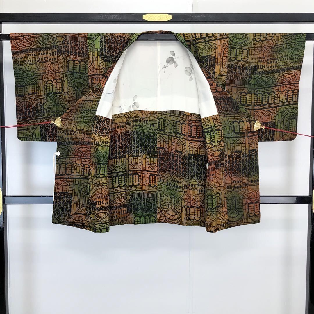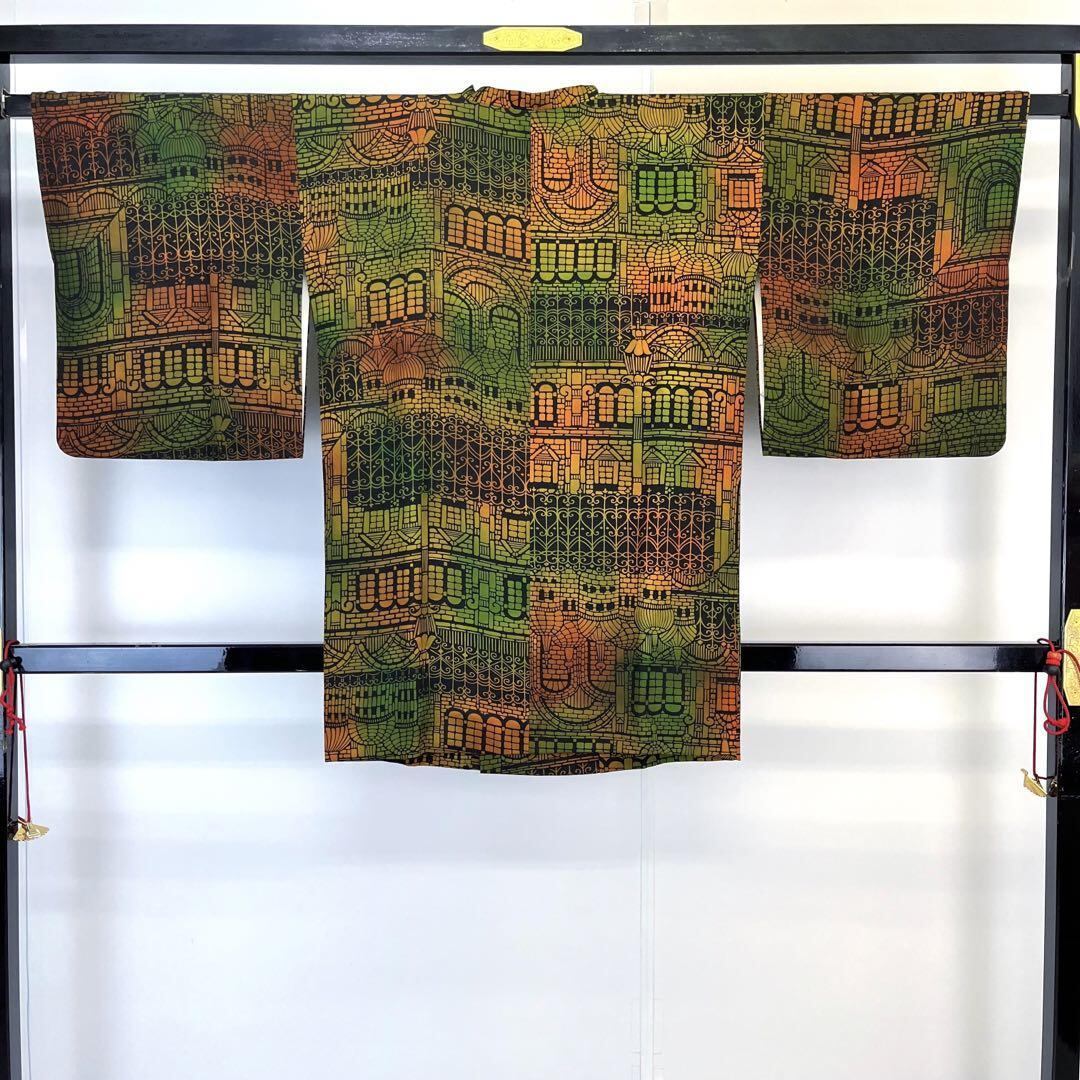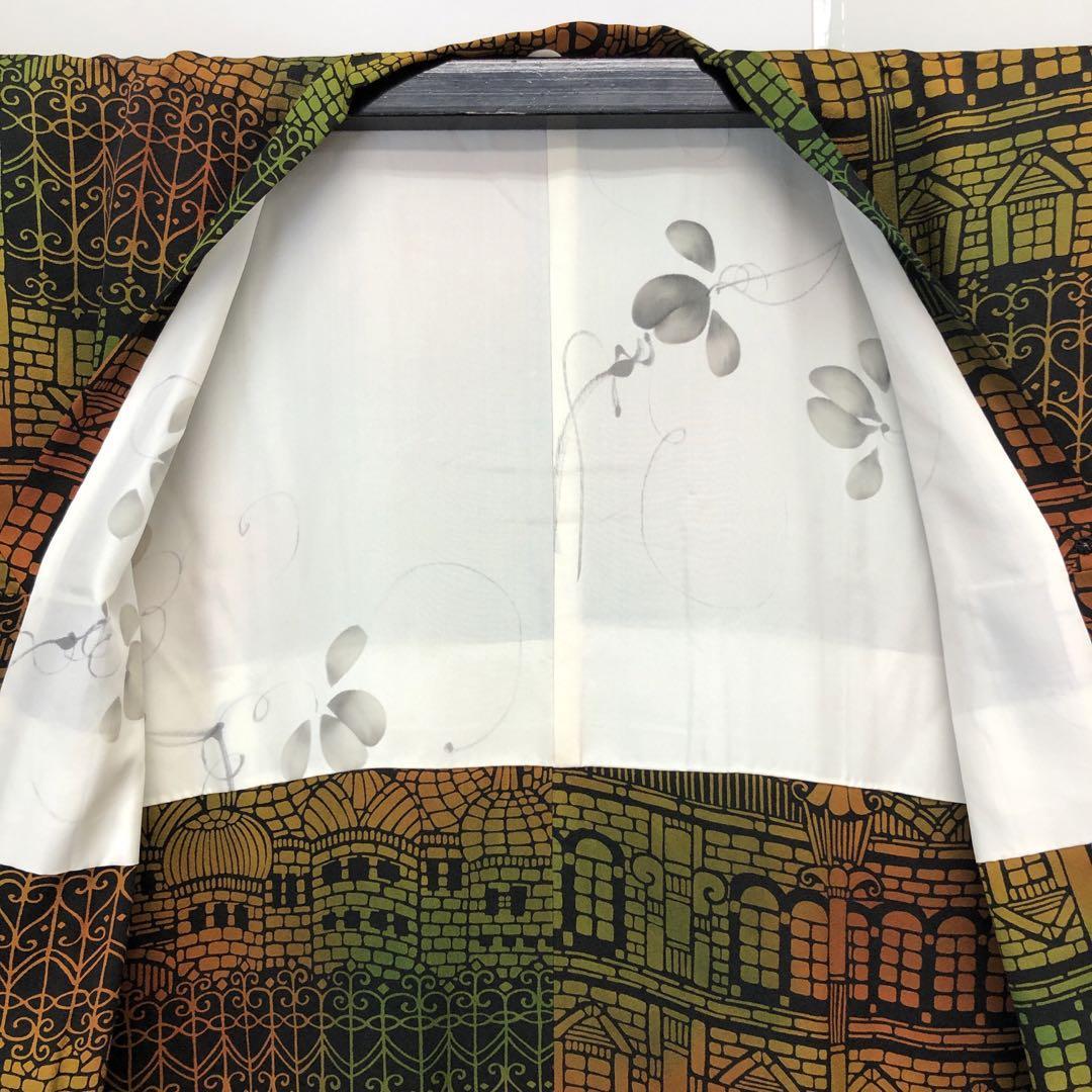 洋館、西洋の風景の柄裄に黒色ベースに色鮮やかなグラデーションの色彩、アート的な印象を感じる素敵なお品でございます。
