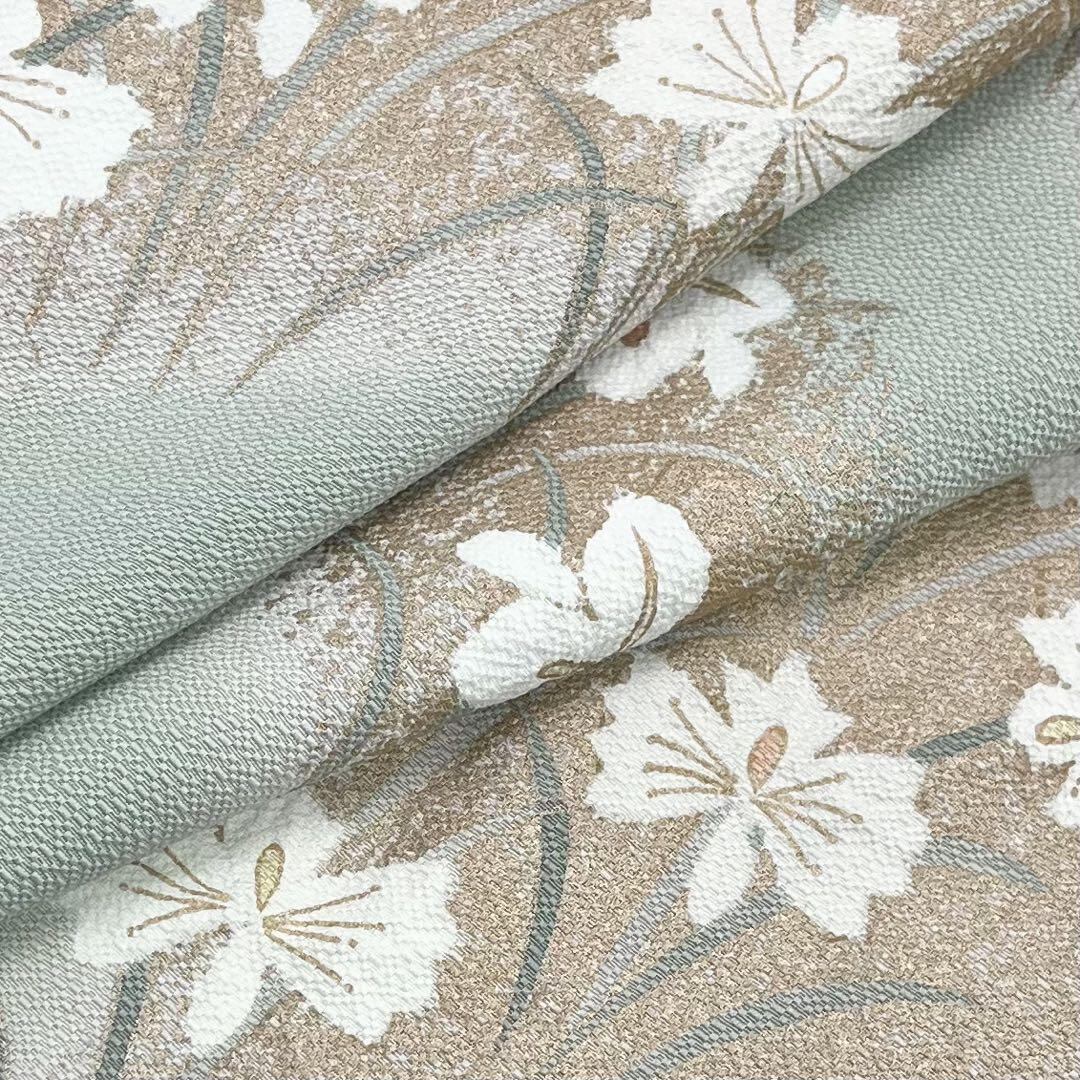 香色の品のあるお色味に花模様がデザインされた素敵なお品でございます。