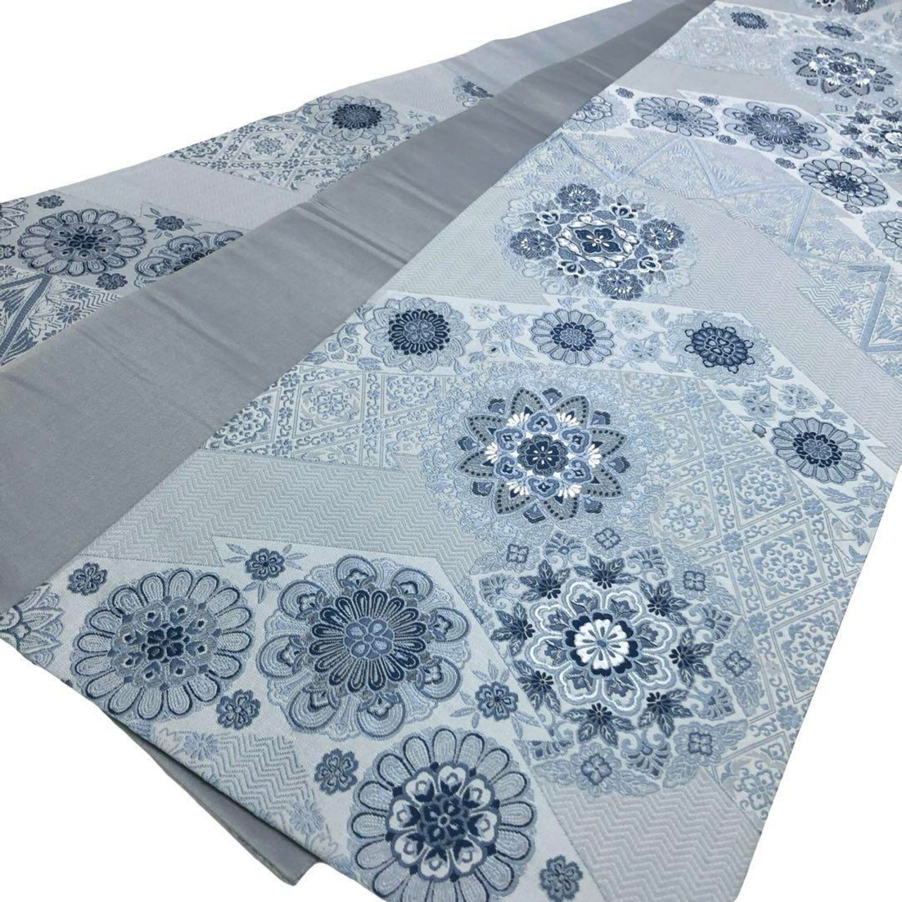 袋帯 松皮宝飾文 美しい華模様 ガード加工 薄藍色 O-4585 着物 きもの kimono 和服 和装 中古 リサイクル着物 【送料無料】