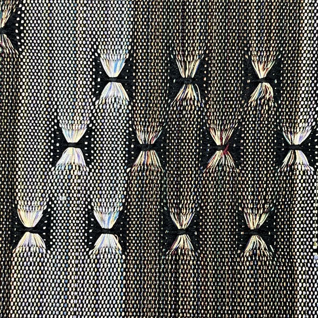 黒色ベースのお色味に縦柄の美しい織模様がデザインされたモダンな雰囲気の素敵なお品でございます。