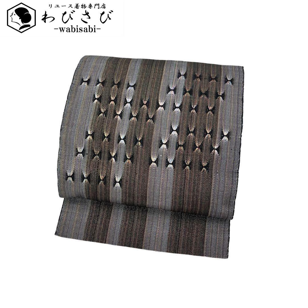 名古屋帯 モダンな美しい縦柄織模様 金糸 O-4596 着物 きもの kimono 和服 和装 中古 リサイクル着物 【送料無料】