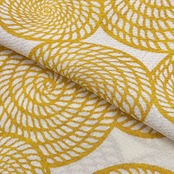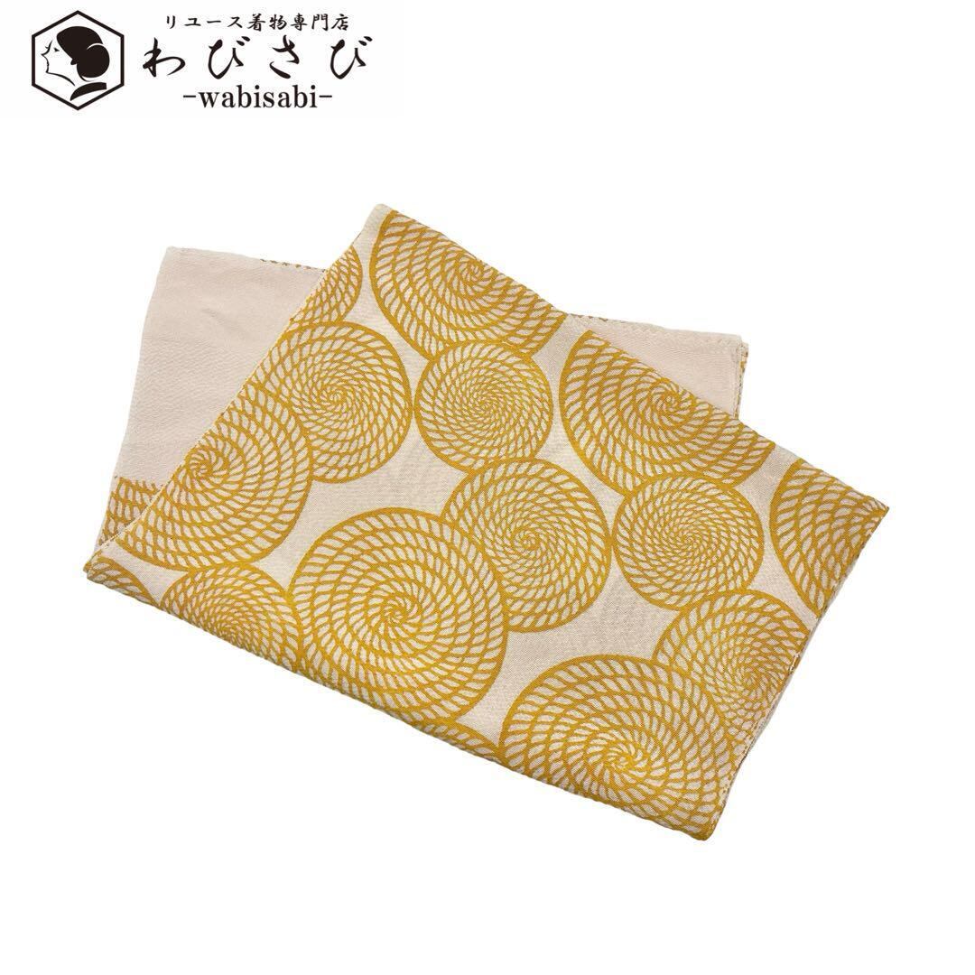 雄黄色のお色味に縄模様の柄裄がデザインされた素敵な縮緬のお品でございます。