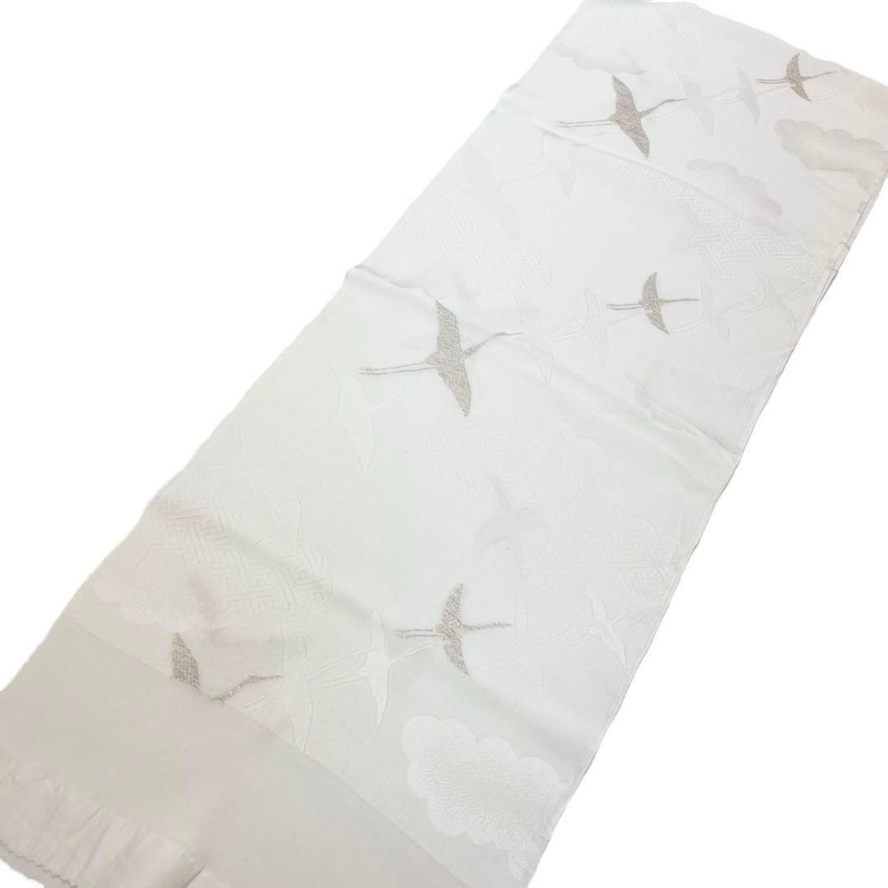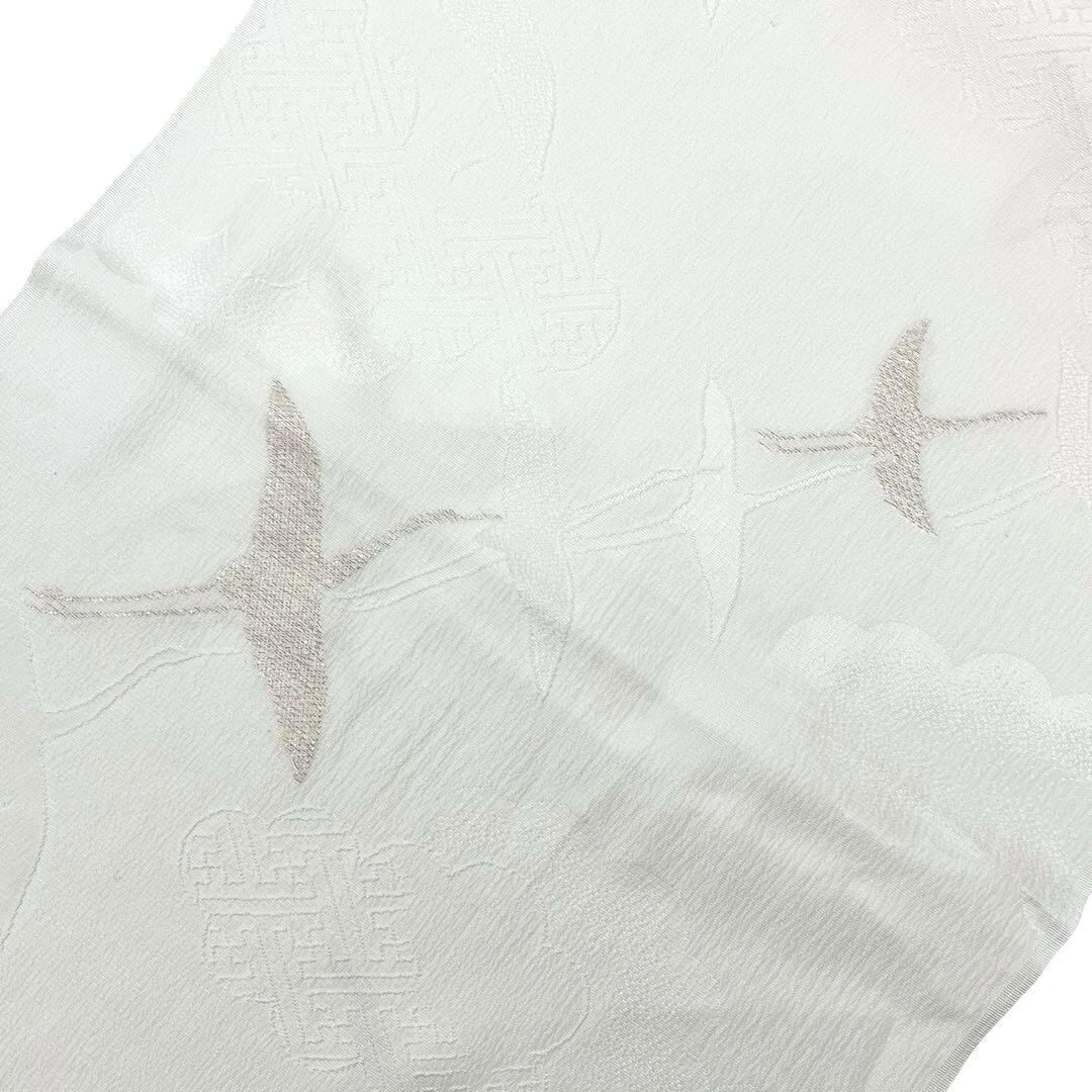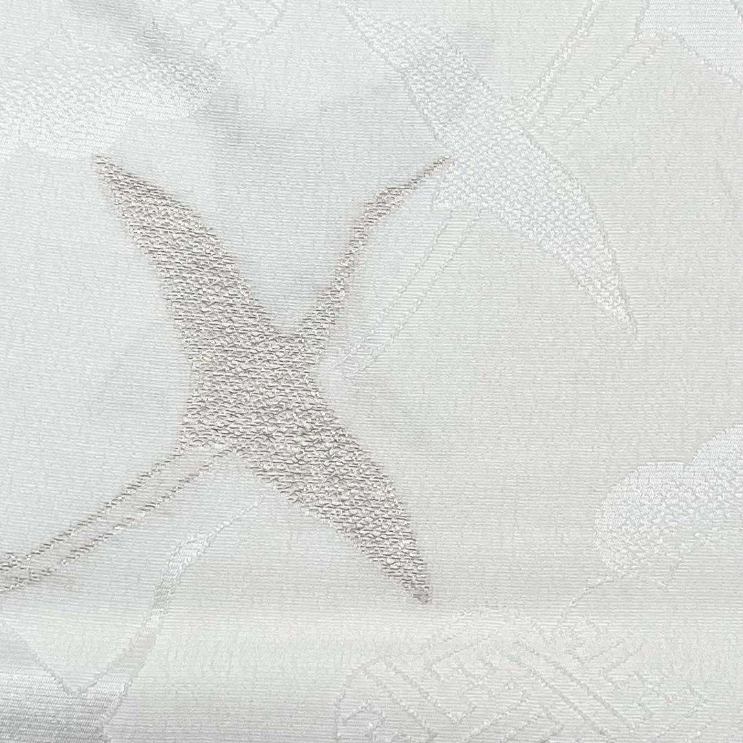 乳白色のお色味に金糸で鶴の柄裄がデザインされた素敵なお品でございます。